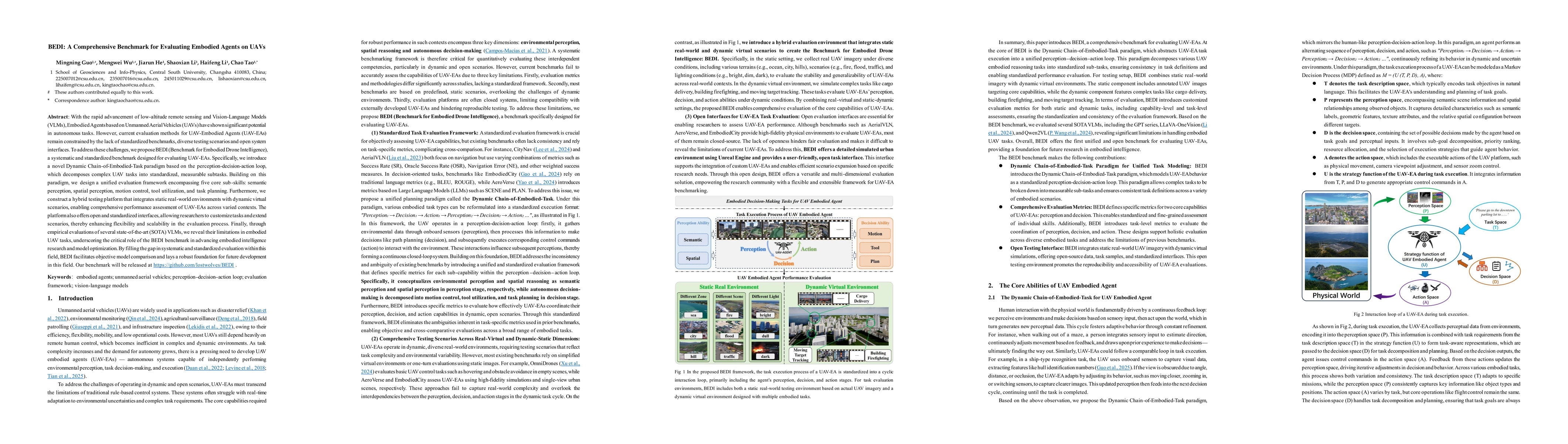 A new benchmark called BEDI has been created to evaluate Embodied Agents on Unmanned Aerial Vehicles (UAVs), providing a standardized framework for testing and comparing UAV-Embodied Agent performance.