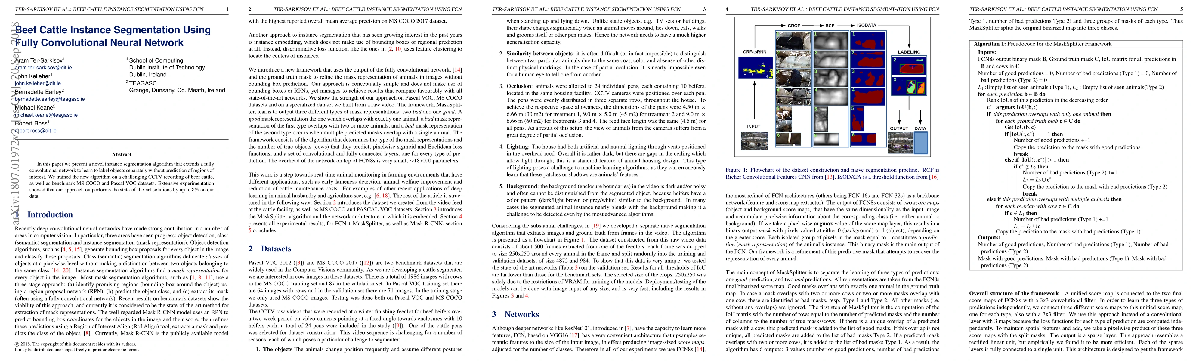 This paper proposes an instance segmentation algorithm using a fully convolutional network to separately label each beef cattle instance in CCTV footage during winter finishing. The method aims to contribute to behavior analysis and early detection of welfare-related issues in cattle.