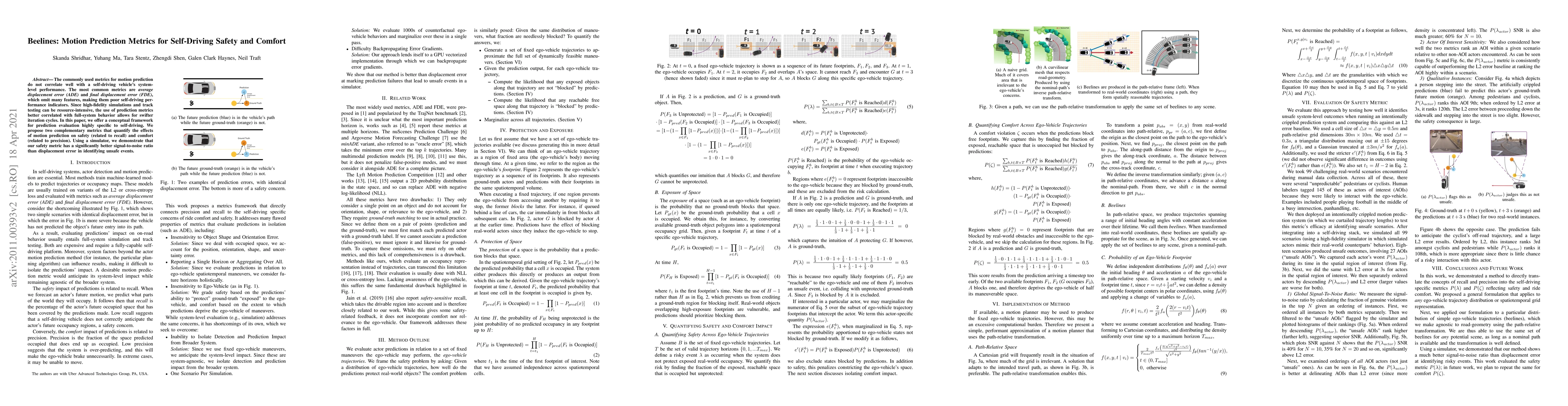 Researchers propose two new metrics to evaluate motion prediction in self-driving cars, focusing on safety and comfort, which show better correlation with system-level performance than existing metrics.