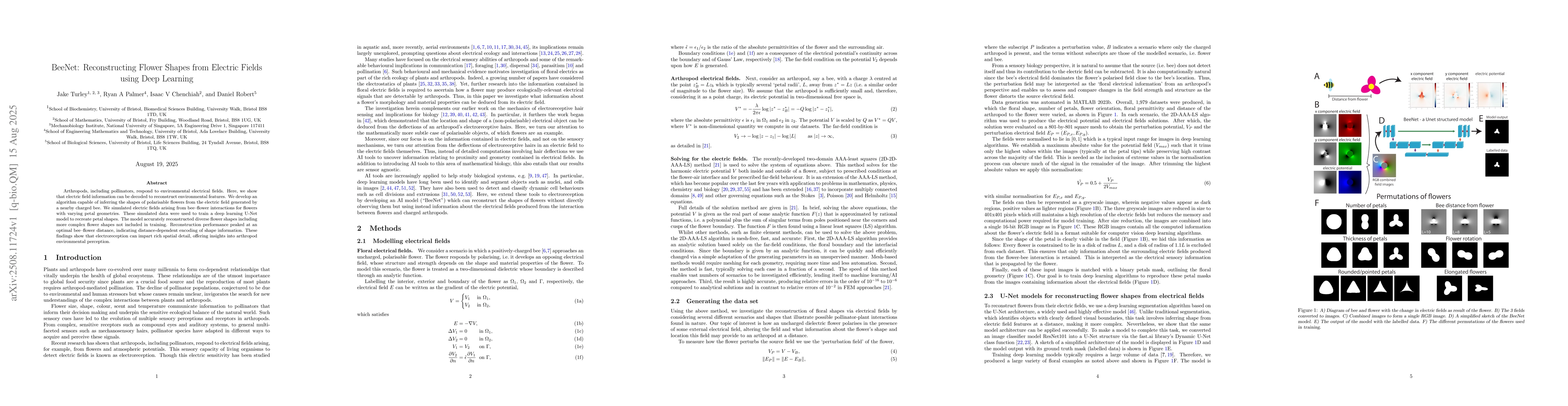 Arthropods, including pollinators, respond to environmental electrical fields. Here, we show that electric field information can be decoded to reconstruct environmental features. We develop an algorithm capable of inferring the shapes of polarisable flowers from the electric field generated by a nearby charged bee. We simulated electric fields arising from bee flower interactions for flowers with varying petal geometries. These simulated data were used to train a deep learning UNet model to recreate petal shapes. The model accurately reconstructed diverse flower shapes including more complex flower shapes not included in training. Reconstruction performance peaked at an optimal bee flower distance, indicating distance-dependent encoding of shape information. These findings show that electroreception can impart rich spatial detail, offering insights into arthropod environmental perception.