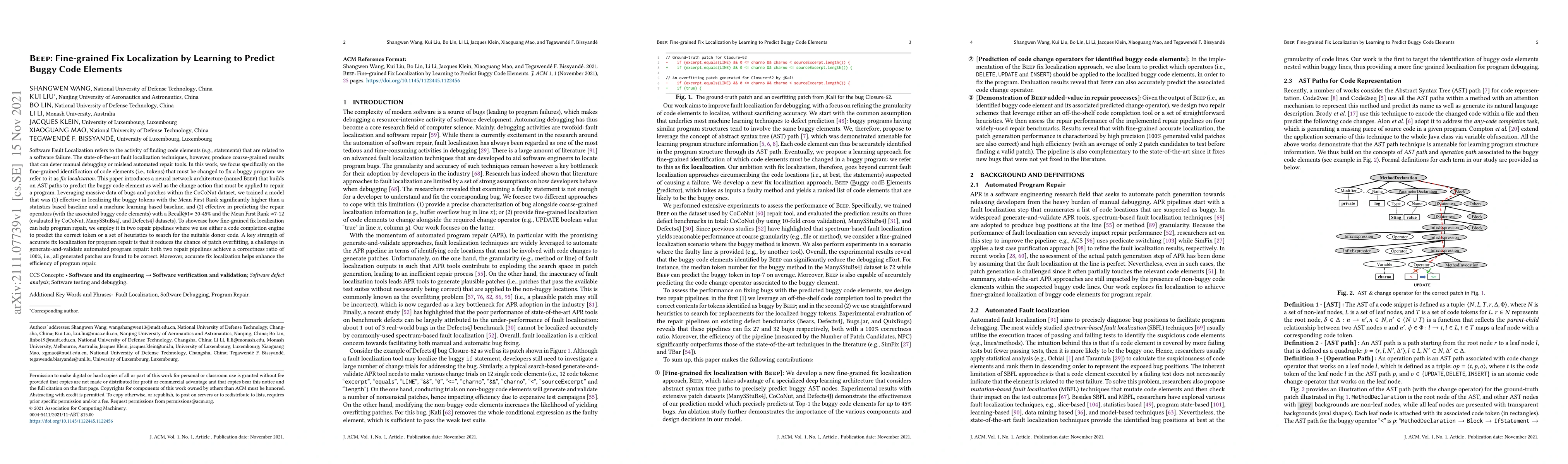 This paper introduces Beep, a neural network architecture for fine-grained fault localization that identifies specific code tokens needing repair and predicts the necessary change actions. The model, trained on extensive bug and patch data, significantly outperforms baselines in localizing buggy tokens and predicting repair operators, demonstrating its effectiveness in enhancing automated program repair efficiency and correctness.