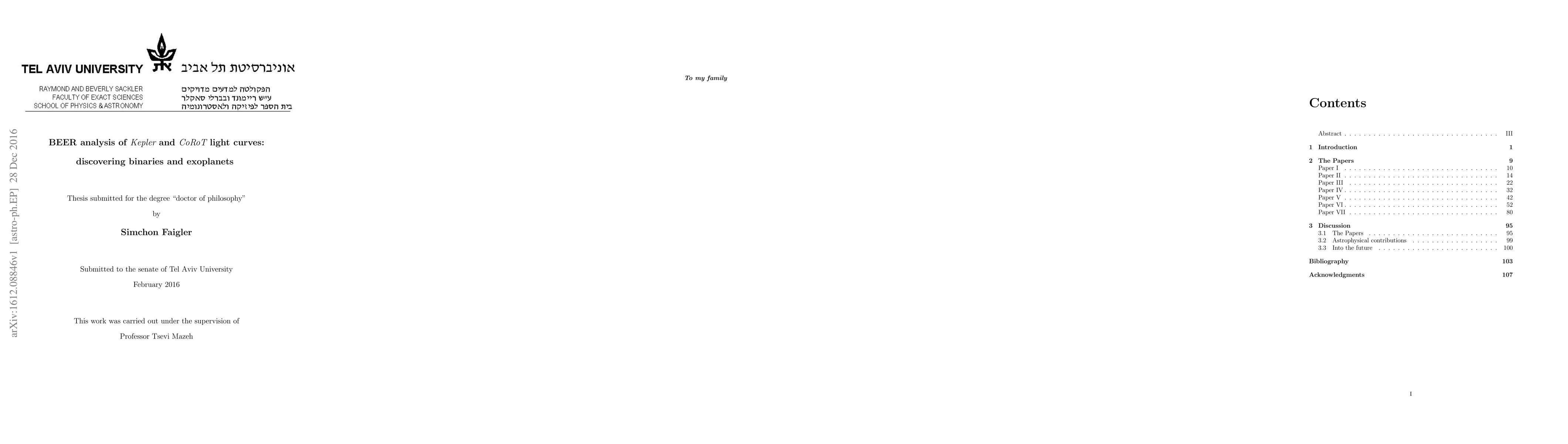 This thesis consists of seven scientific papers that cover the proof-of-concept, the development, and discoveries made through the use of the BEER (BEaming, Ellipsoidal, and Reflection) algorithm for searching for companions in the light curves from the Kepler and CoRoT space telescopes. Paper I presents the detection of the ellipsoidal and the beaming effects in the CoRoT light curve of CoRoT-3, a system of a $22$$M_{\rm Jup}$ brown dwarf orbiting an F star with an orbital period of $4.3$ days. This work served as a proof-of-concept that these effects are detectable in the space light curves of systems with brown-dwarf or planetary secondaries, thus indicating that similar modulations may be detected in the light curves of non-transiting systems. Abridged... The last study, Paper VII, demonstrates the different strengths and utility of the BEER search algorithm. It presents the discovery of four short-period eclipsing binaries in the Kepler light curves, consisting of an A-star primary and a low-mass WD secondary (dA+WD). The systems show BEER phase modulations together with primary and secondary eclipses. These add to the 6 Kepler, and 18 WASP, previously known short-period eclipsing dA+WD binaries. The paper shows that three of the new systems harbor the smallest WDs detected so far in such binaries. These three binaries extend the previously known population to older systems with cooler and smaller WD secondaries, allowing to test binary evolution theories in a parameter region not observed before. The seven papers illustrate the effectiveness of the BEER algorithm in finding both common stellar binaries and rare astrophysical objects. As such, the BEER tool can serve as an important component in the virtual astronomy toolbox for mining the vast astronomical data produced by current and future photometric surveys. Abridged.