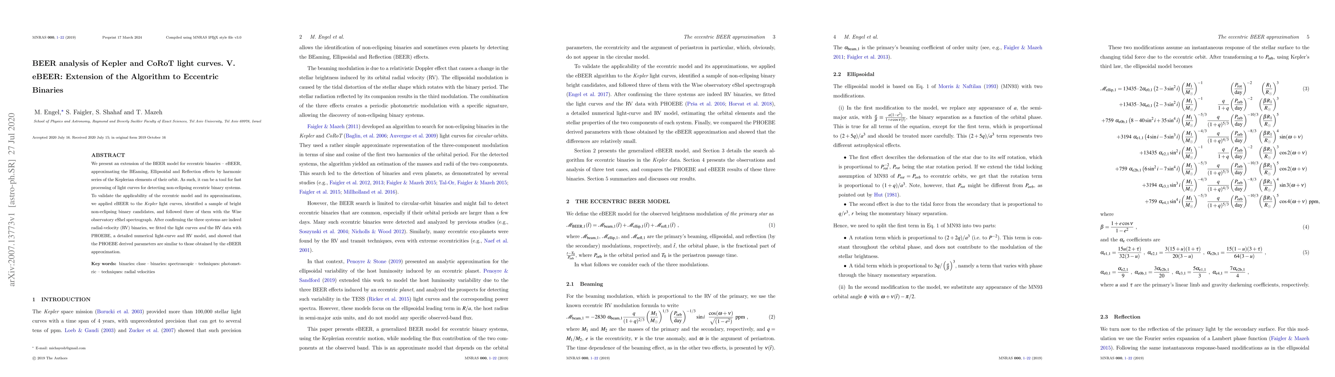 This paper introduces eBEER, an extension of the BEER model to analyze eccentric binaries, approximating beaming, ellipsoidal, and reflection effects. The authors validated eBEER by applying it to Kepler light curves, confirming three non-eclipsing binary candidates as radial-velocity binaries, and showing good agreement between eBEER and detailed PHOEBE models.