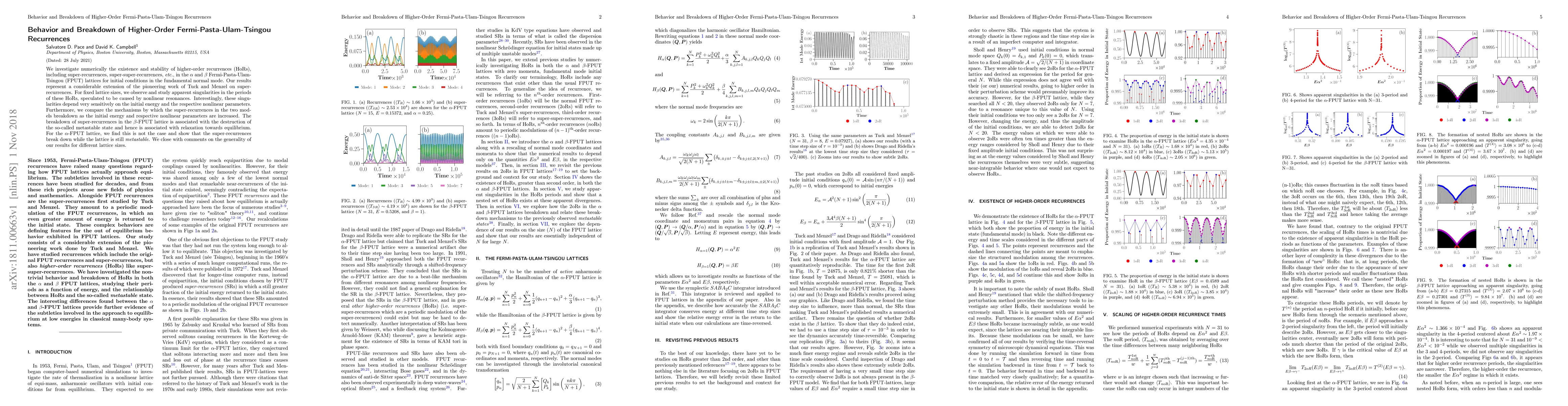 This research numerically explores higher-order recurrences (HoRs) in the alpha and beta FPUT lattices, extending prior work on super-recurrences. It identifies singularities in HoR periods due to nonlinear resonances, sensitive to initial energy and parameters, and reveals different mechanisms for breakdown of super-recurrences in the two lattices, with implications for metastability and relaxation towards equilibrium.