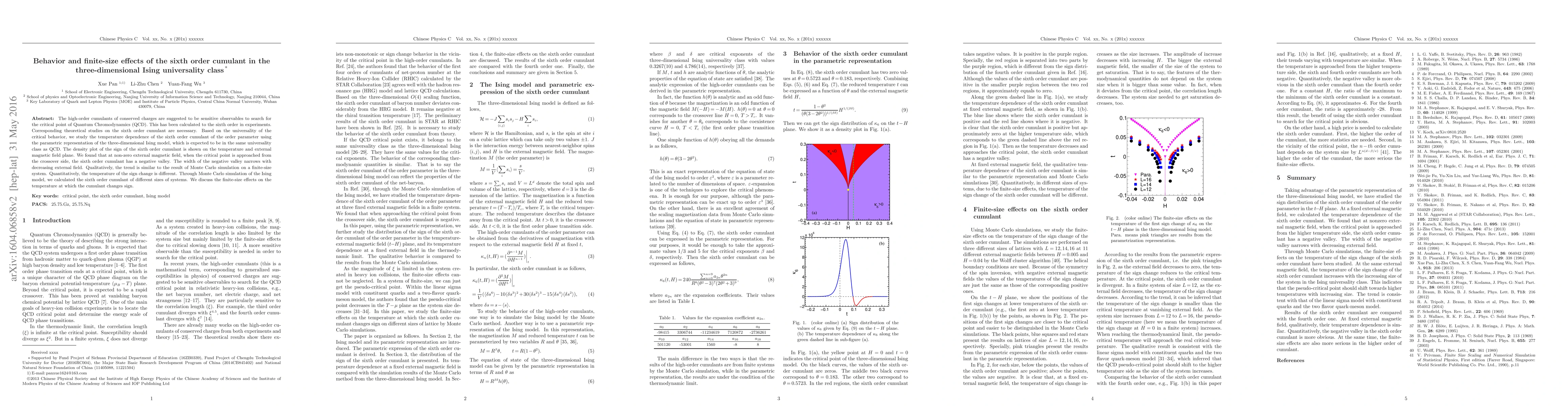 This paper investigates the sixth order cumulant in the three-dimensional Ising model, which is expected to share the same universality class as Quantum Chromodynamics (QCD). The study reveals a negative valley in the sixth order cumulant as the critical point is approached, with its width narrowing at lower external magnetic fields, and discusses finite-size effects observed through Monte Carlo simulations.