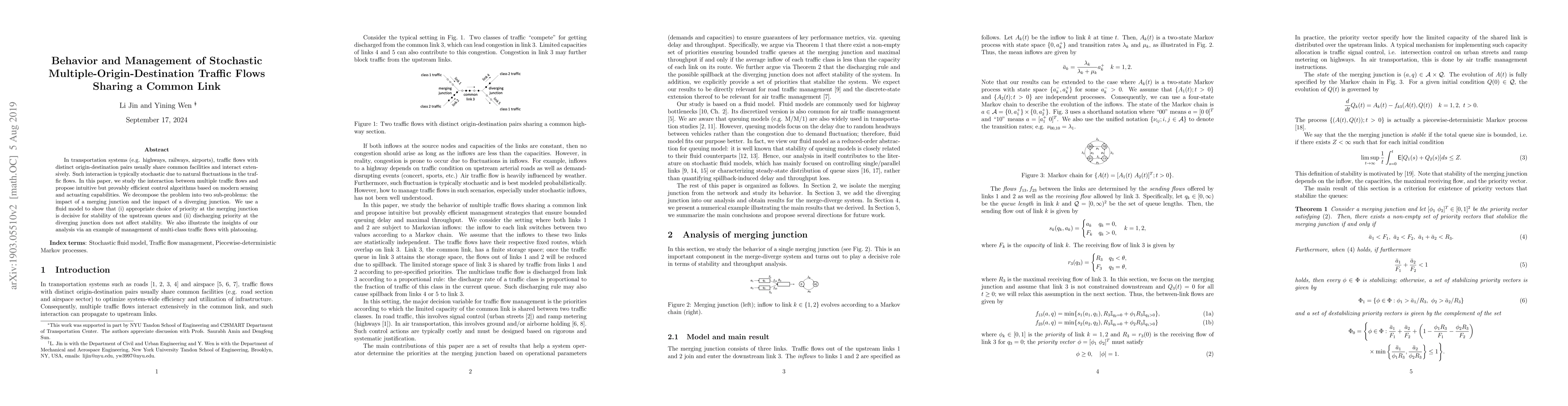 In transportation systems (e.g. highways, railways, airports), traffic flows with distinct origin-destination pairs usually share common facilities and interact extensively. Such interaction is typically stochastic due to natural fluctuations in the traffic flows. In this paper, we study the interaction between multiple traffic flows and propose intuitive but provably efficient control algorithms based on modern sensing and actuating capabilities. We decompose the problem into two sub-problems: the impact of a merging junction and the impact of a diverging junction. We use a fluid model to show that (i) appropriate choice of priority at the merging junction is decisive for stability of the upstream queues and (ii) discharging priority at the diverging junction does not affect stability. We also illustrate the insights of our analysis via an example of management of multi-class traffic flows with platooning.