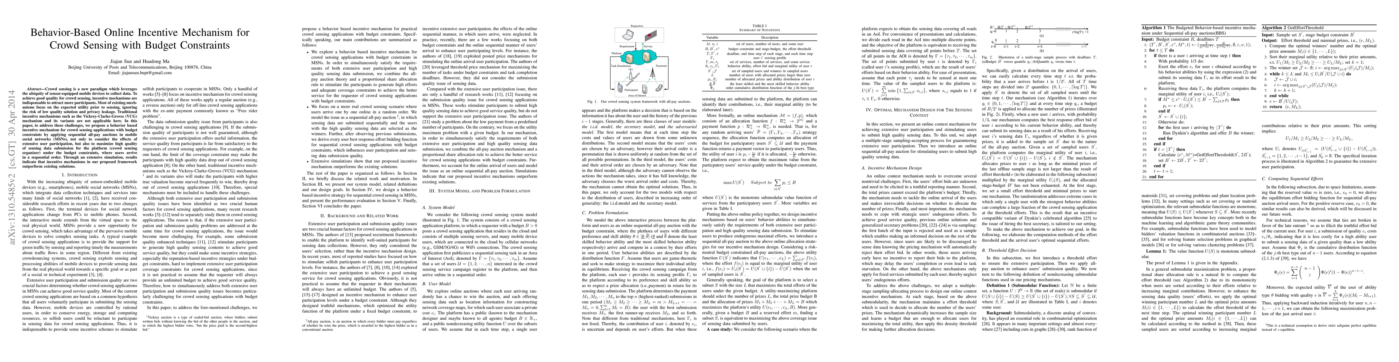 This paper proposes a behavior-based incentive mechanism using sequential all-pay auctions in mobile social networks to enhance crowd sensing quality under budget constraints. The proposed mechanism outperforms existing solutions by considering extensive user participation and maximizing high-quality data submissions.