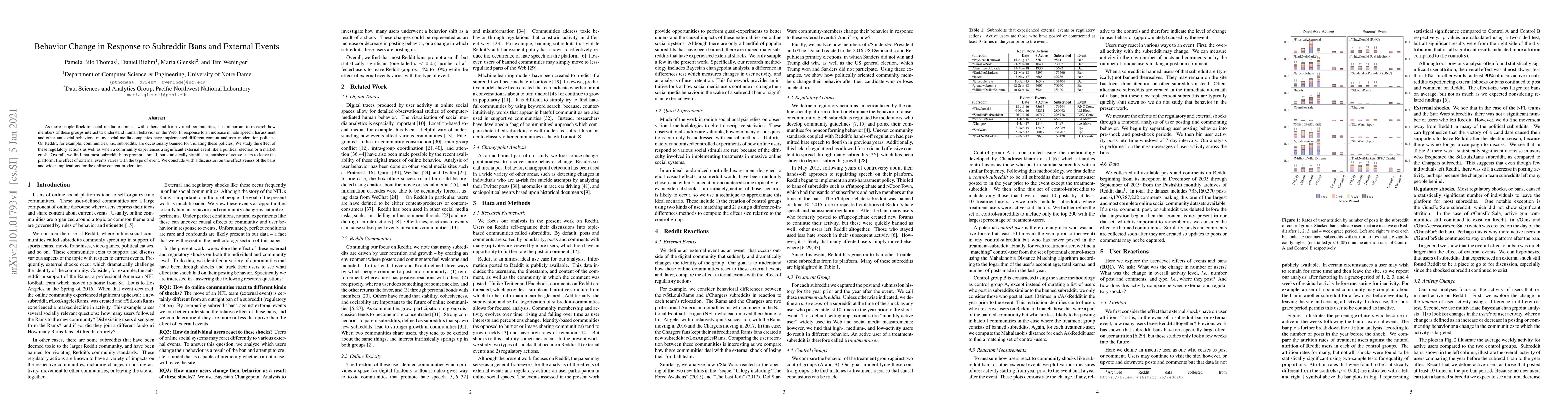 As more people flock to social media to connect with others and form virtual communities, it is important to research how members of these groups interact to understand human behavior on the Web. In response to an increase in hate speech, harassment and other antisocial behaviors, many social media companies have implemented different content and user moderation policies. On Reddit, for example, communities, i.e, subreddits, are occasionally banned for violating these policies. We study the effect of these regulatory actions as well as when a community experiences a significant external event like a political election or a market crash. Overall, we find that most subreddit bans prompt a small, but statistically significant, number of active users to leave the platform; the effect of external events varies with the type of event. We conclude with a discussion on the effectiveness of the bans and wider implications for the online content moderation.