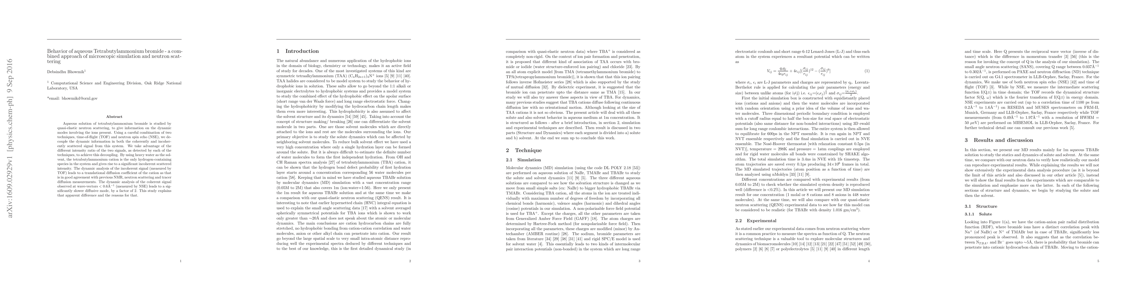 This study combines microscopic simulation and neutron scattering to analyze the dynamic behavior of tetrabutylammonium bromide in aqueous solution. The research reveals a translational diffusion coefficient for the cation consistent with previous measurements, while identifying a slower diffusive mode in the coherent signal, explaining the observed differences.