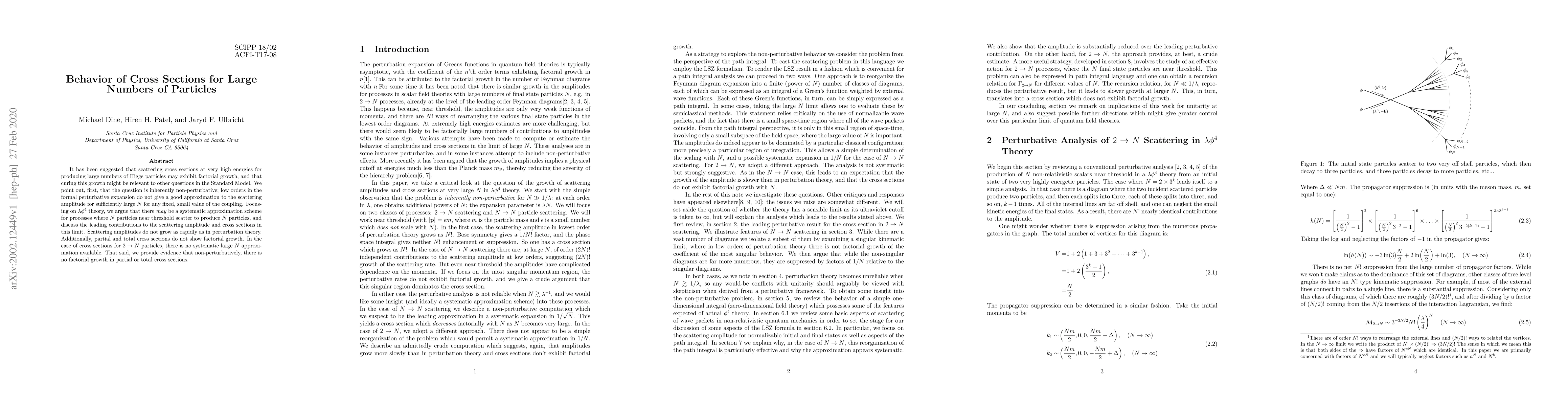 It has been suggested that scattering cross sections at very high energies for producing large numbers of Higgs particles may exhibit factorial growth, and that curing this growth might be relevant to other questions in the Standard Model. We point out, first, that the question is inherently non-perturbative; low orders in the formal perturbative expansion do not give a good approximation to the scattering amplitude for sufficiently large N for any fixed, small value of the coupling. Focusing on $\lambda \phi^{4}$ theory, we argue that there may be a systematic approximation scheme for processes where N particles near threshold scatter to produce N particles, and discuss the leading contributions to the scattering amplitude and cross sections in this limit. Scattering amplitudes do not grow as rapidly as in perturbation theory. Additionally, partial and total cross sections do not show factorial growth. In the case of cross sections for $2 \to N$ particles, there is no systematic large N approximation available. That said, we provide evidence that non-perturbatively, there is no factorial growth in partial or total cross sections.