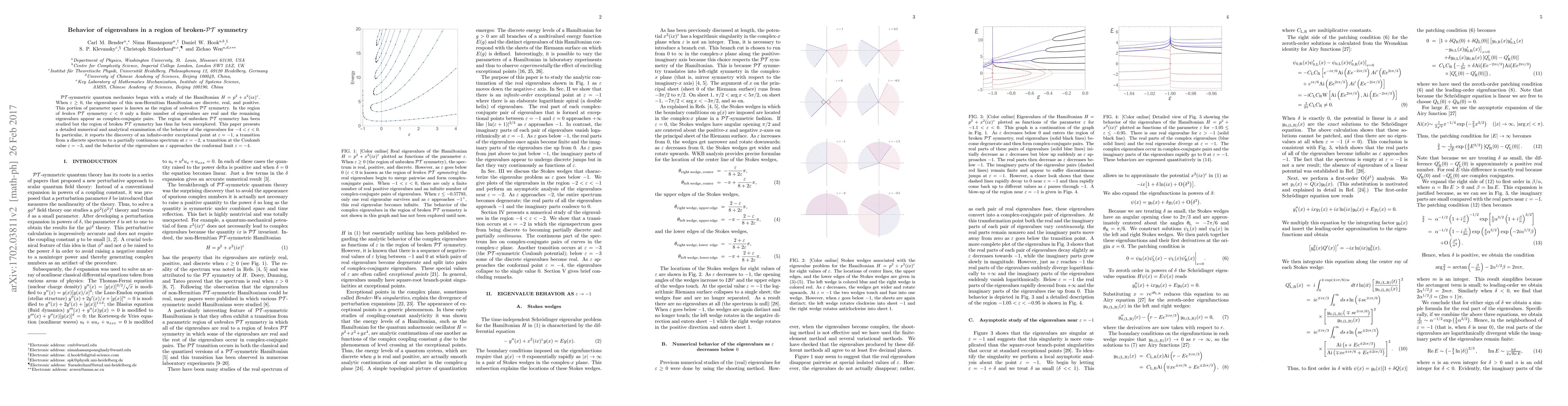 This paper explores the behavior of eigenvalues in the broken-PT symmetry regime of the Hamiltonian $H=p^2+x^2(ix)^\varepsilon$, revealing an infinite-order exceptional point at $\varepsilon=-1$ and transitions to a partially continuous spectrum at $\varepsilon=-2$ and $\varepsilon=-3$.