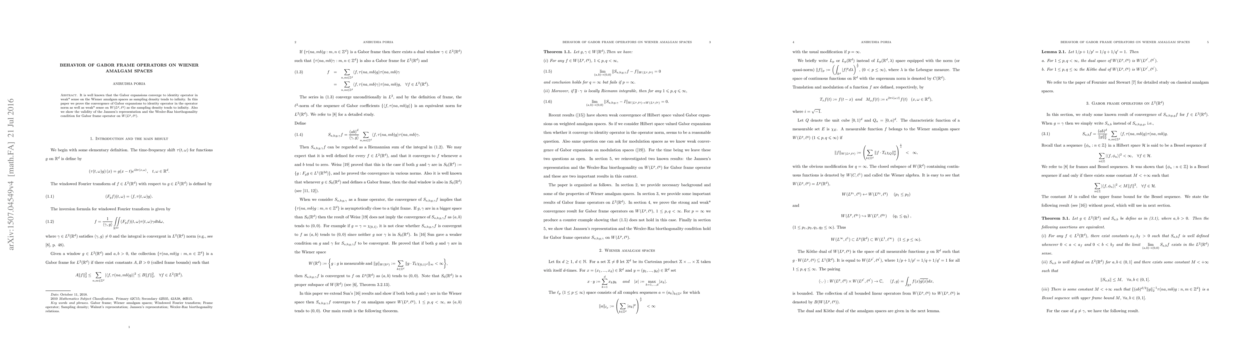 This paper proves the convergence of Gabor expansions to the identity operator in both operator norm and weak* sense on Wiener amalgam spaces $W(L^p, \ell^q)$ as sampling density increases, and validates Janssen's representation and the Wexler-Raz biorthogonality condition for Gabor frame operators.