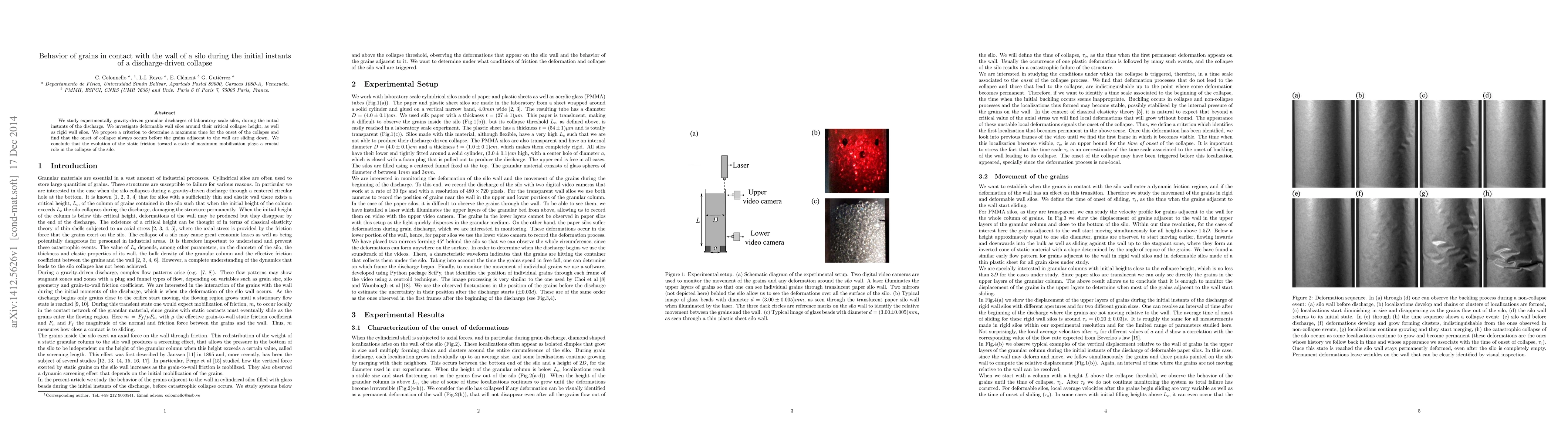 Researchers studied how grains behave during initial collapse of a silo wall, finding that static friction plays a key role in the onset of collapse. They propose a criterion for determining when the collapse begins, before grains near the wall start sliding down.