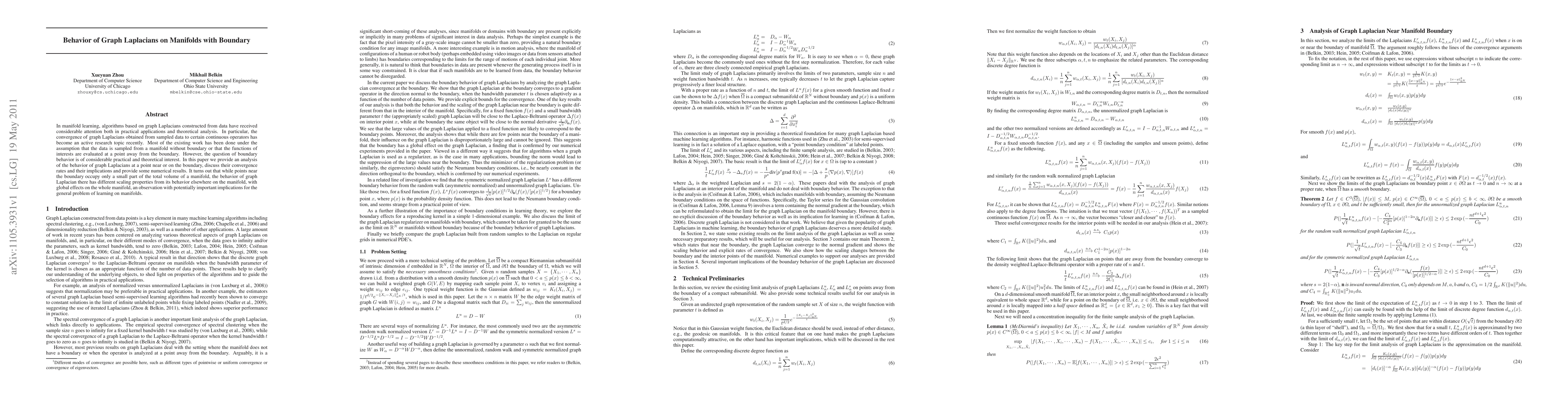 This paper investigates the behavior of graph Laplacians near or on the boundary of manifolds, demonstrating different scaling properties compared to interior points, which has significant implications for manifold learning algorithms. The study also explores convergence rates and provides numerical results to support the theoretical findings.