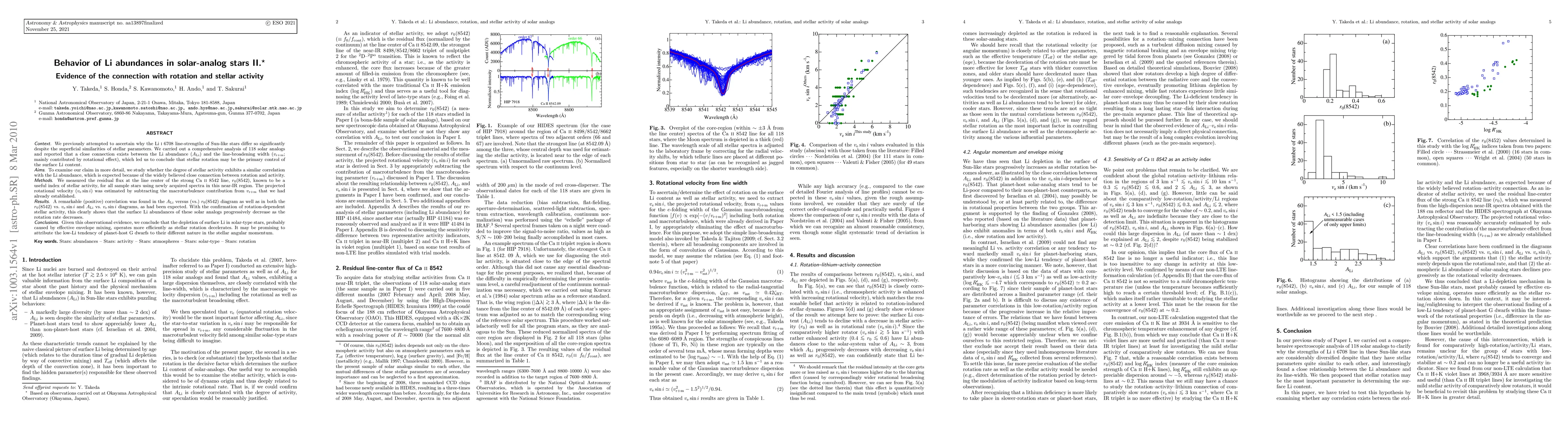 This paper investigates the relationship between lithium abundance in solar-analog stars and their rotation and stellar activity, finding a strong correlation between lower lithium content and slower rotation rates. The study confirms that reduced rotation leads to more efficient depletion of surface lithium, likely due to less effective envelope mixing.