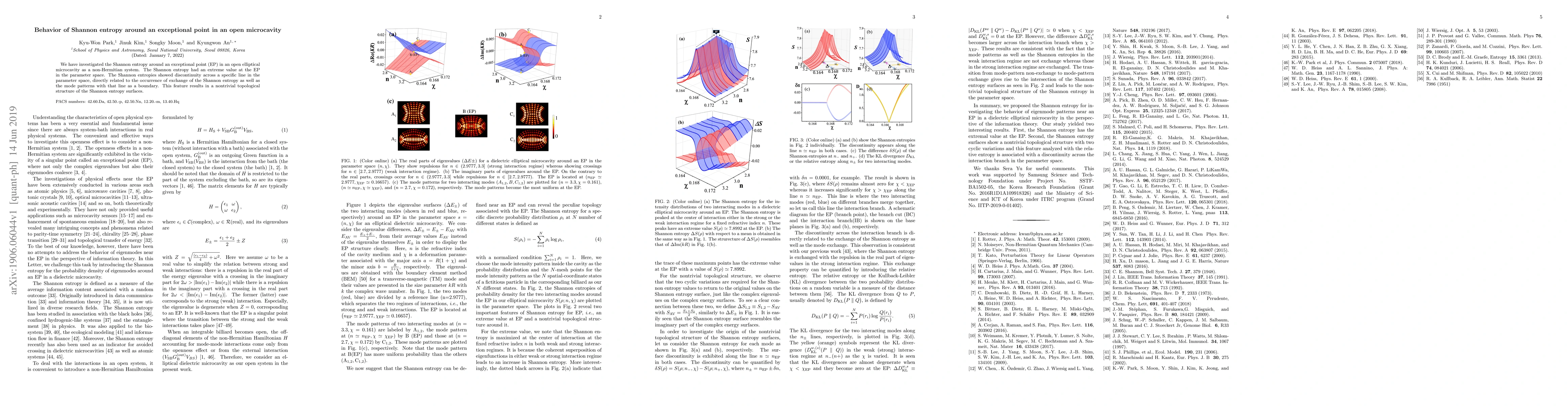 Research shows that a non-Hermitian system's Shannon entropy has an extreme value at an exceptional point in an open microcavity, creating a nontrivial topological structure.