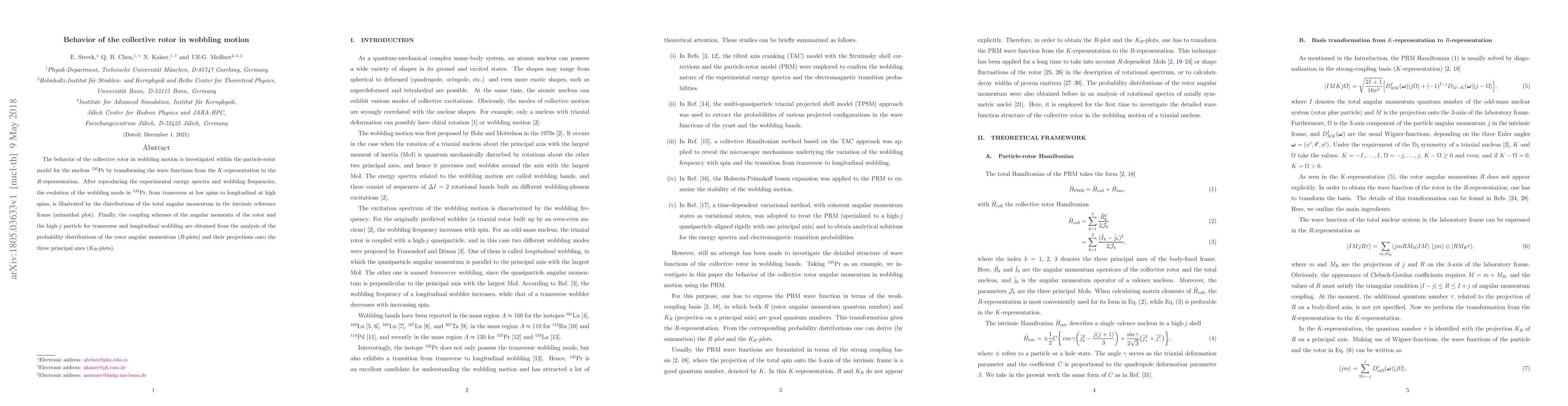 This paper investigates the collective rotor's wobbling motion in $^{135}$Pr using the particle-rotor model, transforming wave functions to illustrate the transition from transverse to longitudinal wobbling with spin increase. The study also analyzes angular momentum coupling schemes through $R$-plots and $K_R$-plots.