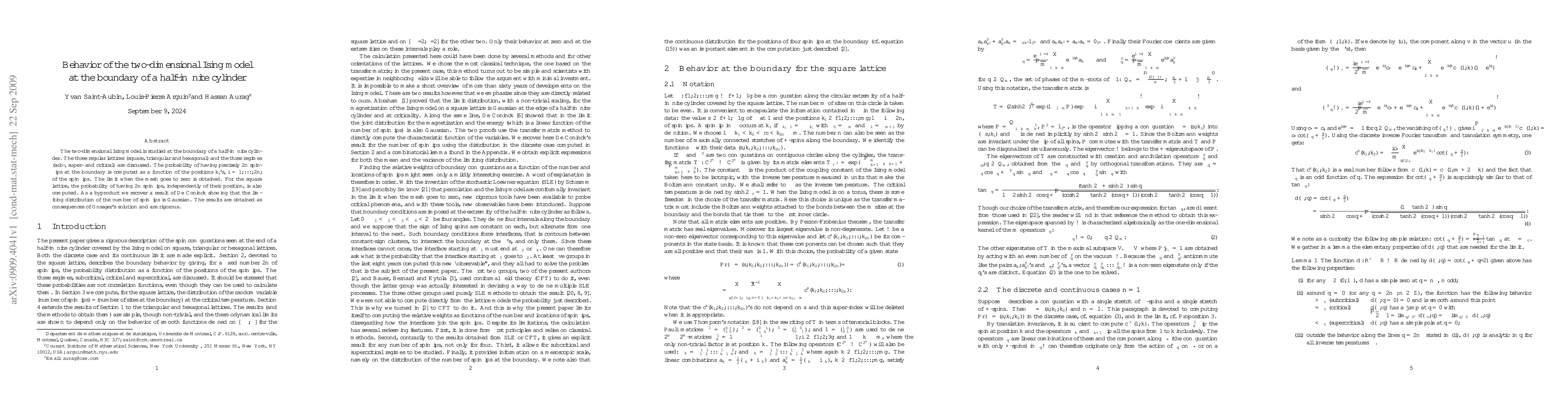 The two-dimensional Ising model is studied at the boundary of a half-infinite cylinder. The three regular lattices (square, triangular and hexagonal) and the three regimes (sub-, super- and critical) are discussed. The probability of having precisely 2n spinflips at the boundary is computed as a function of the positions k_i's, i=1,..., 2n, of the spinflips. The limit when the mesh goes to zero is obtained. For the square lattice, the probability of having 2n spinflips, independently of their position, is also computed. As a byproduct we recover a result of De Coninck showing that the limiting distribution of the number of spinflips is Gaussian. The results are obtained as consequences of Onsager's solution and are rigorous.