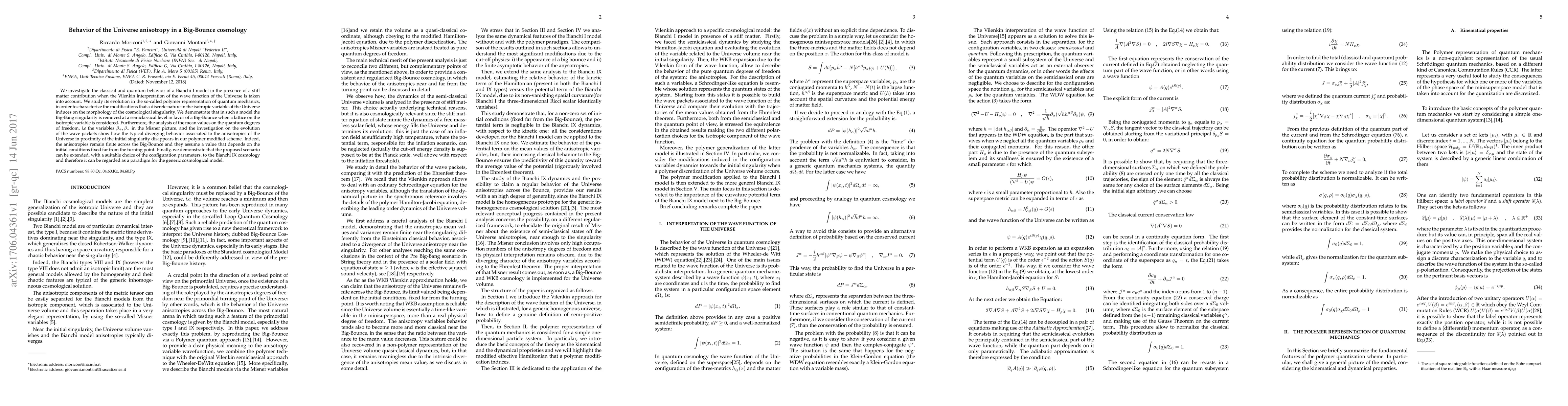 This paper explores the behavior of universe anisotropy in a big-bounce cosmology using a Bianchi I model with stiff matter and Vilenkin's wave function interpretation. It shows that the Big-Bang singularity is replaced by a Big-Bounce in a polymer representation, preventing the typical divergence of anisotropies and maintaining them finite across the bounce.