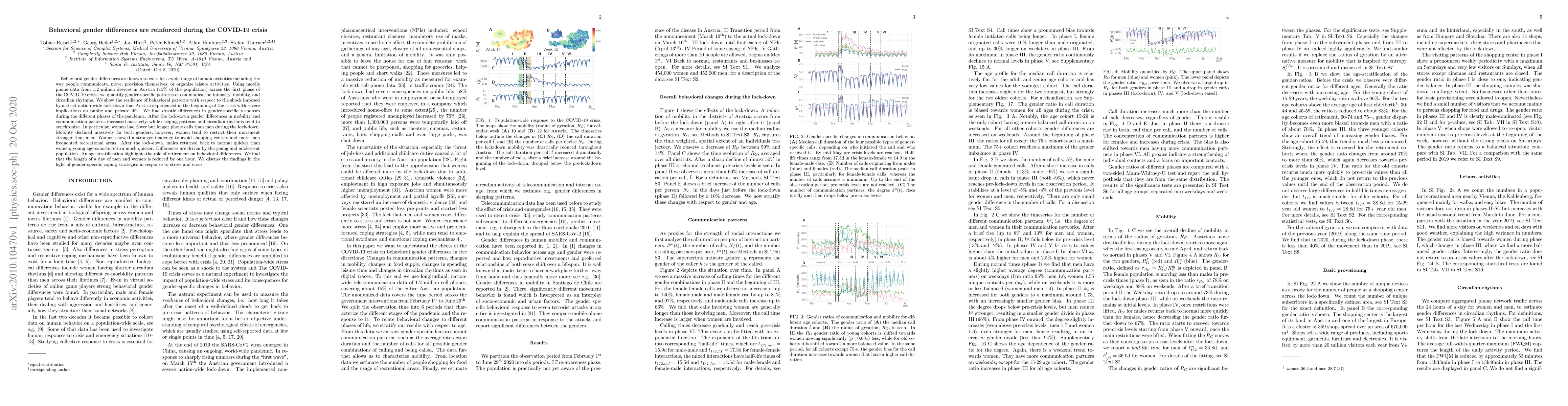 The study quantifies gender-specific behavioral patterns using mobile phone data from Austria during the first COVID-19 lockdown, revealing that women restricted their mobility and communication more than men, with differences increasing post-lockdown. It highlights gender-specific coping strategies in crisis, with males returning to normal behavior quicker than females.