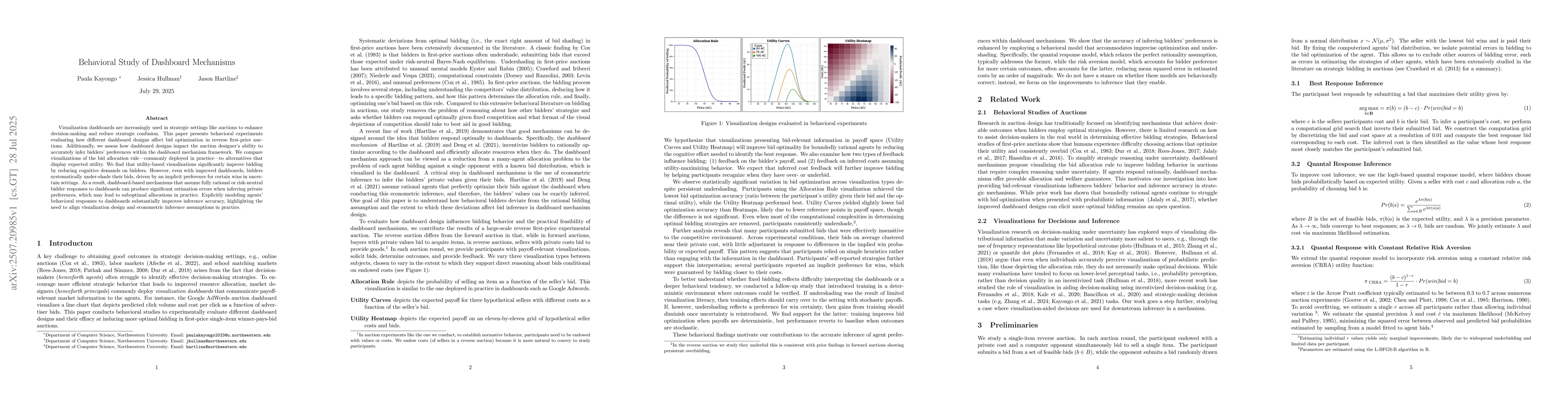 Visualization dashboards are increasingly used in strategic settings like auctions to enhance decision-making and reduce strategic confusion. This paper presents behavioral experiments evaluating how different dashboard designs affect bid optimization in reverse first-price auctions. Additionally, we assess how dashboard designs impact the auction designer's ability to accurately infer bidders' preferences within the dashboard mechanism framework. We compare visualizations of the bid allocation rule, commonly deployed in practice, to alternatives that display expected utility. We find that utility-based visualizations significantly improve bidding by reducing cognitive demands on bidders. However, even with improved dashboards, bidders systematically under-shade their bids, driven by an implicit preference for certain wins in uncertain settings. As a result, dashboard-based mechanisms that assume fully rational or risk-neutral bidder responses to dashboards can produce significant estimation errors when inferring private preferences, which may lead to suboptimal allocations in practice. Explicitly modeling agents' behavioral responses to dashboards substantially improves inference accuracy, highlighting the need to align visualization design and econometric inference assumptions in practice.