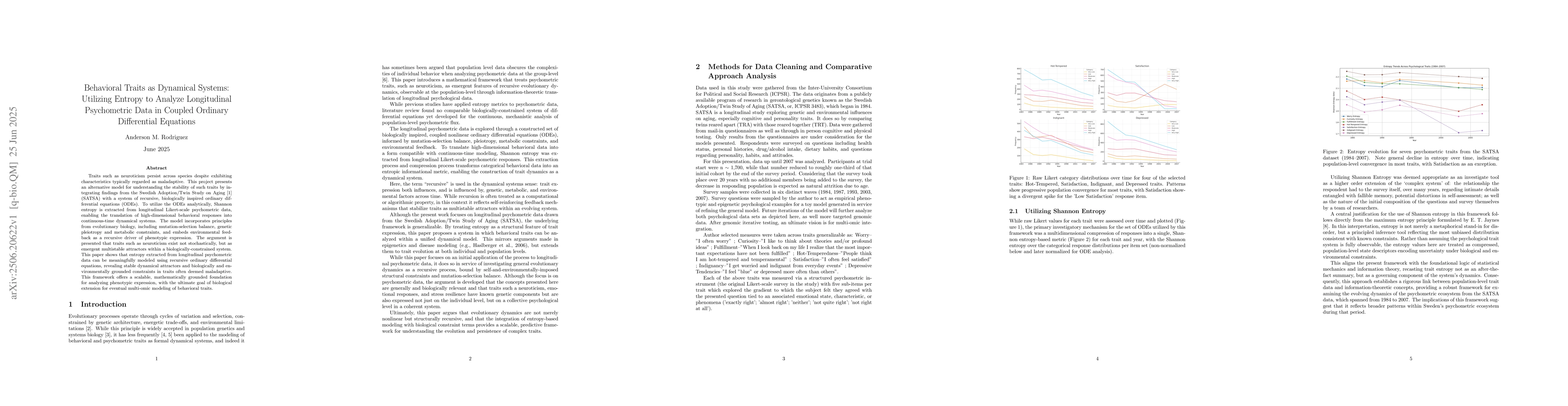 Traits such as neuroticism persist across species despite exhibiting characteristics typically regarded as maladaptive. This project presents an alternative model for understanding the stability of such traits by integrating findings from the Swedish Adoption/Twin Study on Aging (Pedersen, 2015) (SATSA) with a system of recursive, biologically inspired ordinary differential equations (ODEs). To utilize the ODEs analytically, Shannon entropy is extracted from longitudinal Likert-scale psychometric data, enabling the translation of high-dimensional behavioral responses into continuous-time dynamical systems. The model incorporates principles from evolutionary biology, including mutation-selection balance, genetic pleiotropy and metabolic constraints, and embeds environmental feedback as a recursive driver of phenotypic expression. The argument is presented that traits such as neuroticism exist not stochastically, but as emergent multistable attractors within a biologically-constrained system. This paper shows that entropy extracted from longitudinal psychometric data can be meaningfully modeled using recursive ordinary differential equations, revealing stable dynamical attractors and biologically and environmentally grounded constraints in traits often deemed maladaptive. This framework offers a scalable, mathematically grounded foundation for analyzing phenotypic expression, with the ultimate goal of biological extension for eventual multi-omic modeling of behavioral traits.