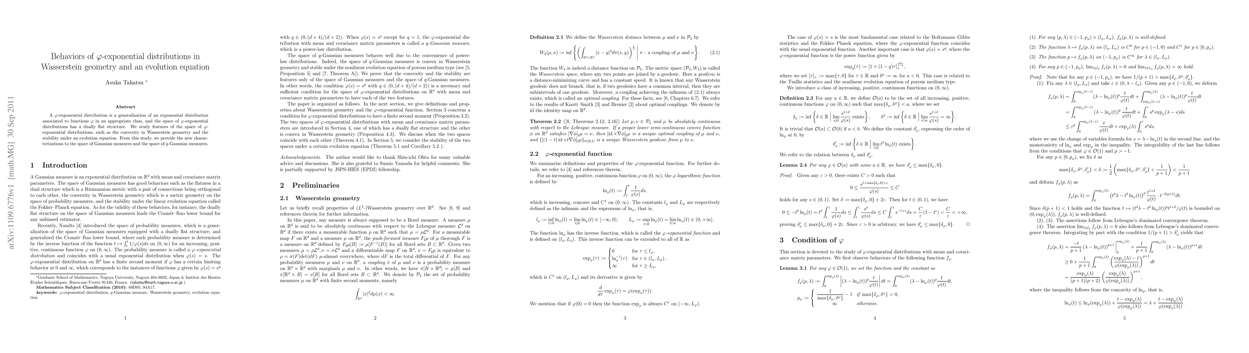 A $\phi$-exponential distribution is a generalization of an exponential distribution associated to functions $\phi$ in an appropriate class, and the space of $\phi$-exponential distributions has a dually flat structure. We study features of the space of $\phi$-exponential distributions, such as the convexity in Wasserstein geometry and the stability under an evolution equation. From this study, we provide the new characterizations to the space of Gaussian measures and the space of $q$-Gaussian measures.