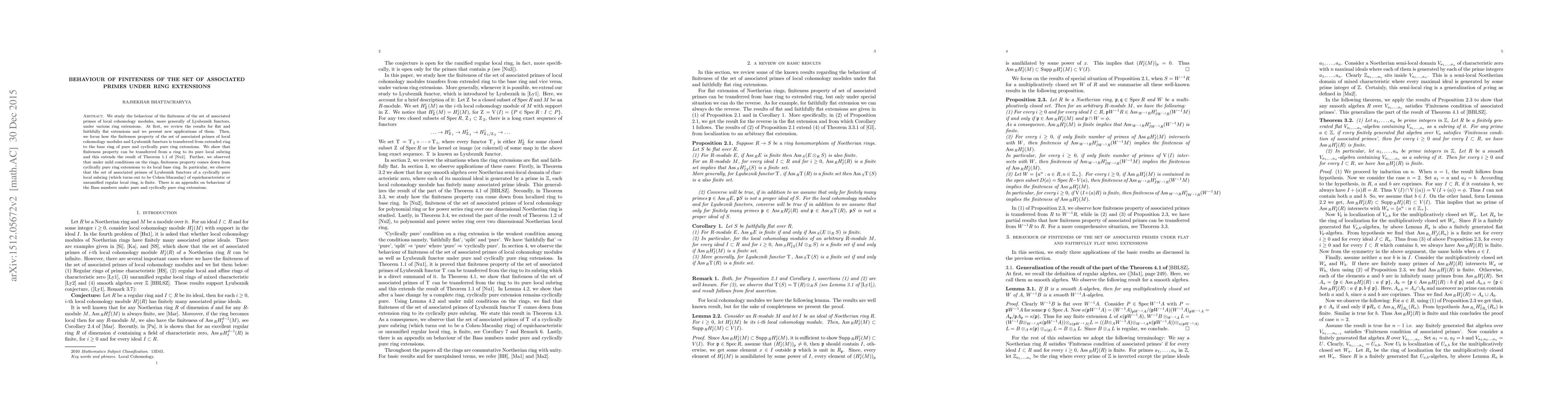 We study the behaviour of the finiteness of the set of associated primes of local cohomology modules, more generally of Lyubeznik functors, under various ring extensions. At first, we review the results for flat and faithfully flat extensions and we present new applications of them. Then, we focus how the finiteness property of the set of associated primes of local cohomology modules and Lyubeznik functors is transferred from extended ring to the base ring of pure and cyclically pure ring extensions. We show that finiteness property can be transferred from a ring to its pure local subring and this extends the result of Theorem 1.1 of \cite{Nu}. Further, we observed that under mild conditions on the rings, finiteness property comes down from cyclically pure ring extensions to its local base ring. In particular, we observe that the set of associated primes of Lyubeznik functors of a cyclically pure local subring (which turns out to be Cohen-Macaulay) of equicharacteristic or unramified regular local ring, is finite. There is an appendix on behaviour of the Bass numbers under pure and cyclically pure ring extensions.