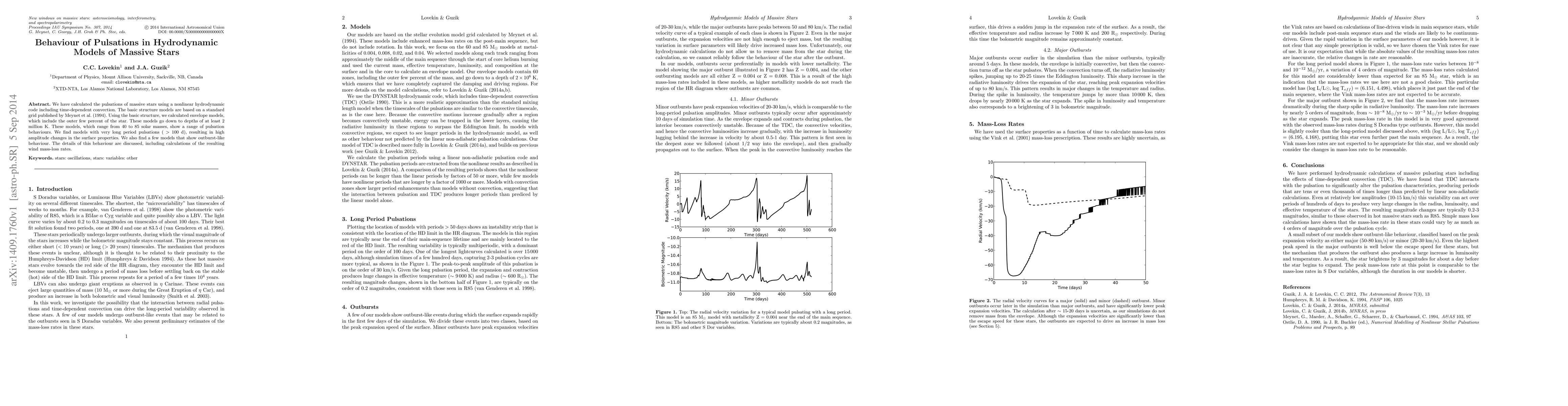 We have calculated the pulsations of massive stars using a nonlinear hydrodynamic code including time-dependent convection. The basic structure models are based on a standard grid published by Meynet et al. (1994). Using the basic structure, we calculated envelope models, which include the outer few percent of the star. These models go down to depths of at least 2 million K. These models, which range from 40 to 85 solar masses, show a range of pulsation behaviours. We find models with very long period pulsations ( $>$ 100 d), resulting in high amplitude changes in the surface properties. We also find a few models that show outburst-like behaviour. The details of this behaviour are discussed, including calculations of the resulting wind mass-loss rates.