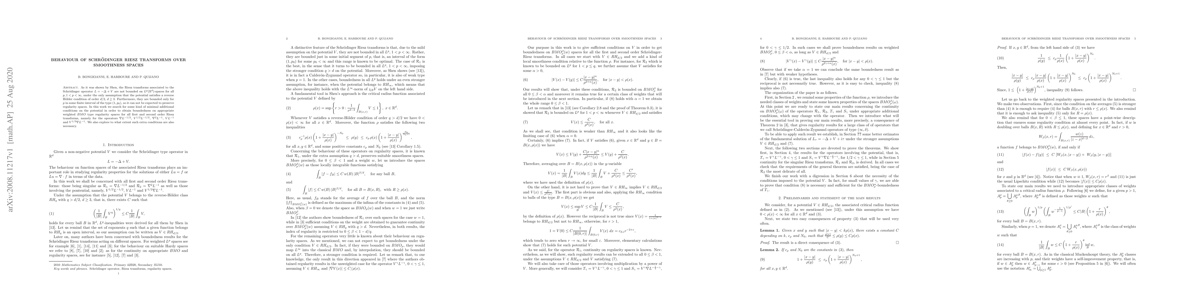 As it was shown by Shen, the Riesz transforms associated to the Schr\"odinger operator $L=-\Delta + V$ are not bounded on $L^p(\mathbb{R}^d)$-spaces for all $p, 1
