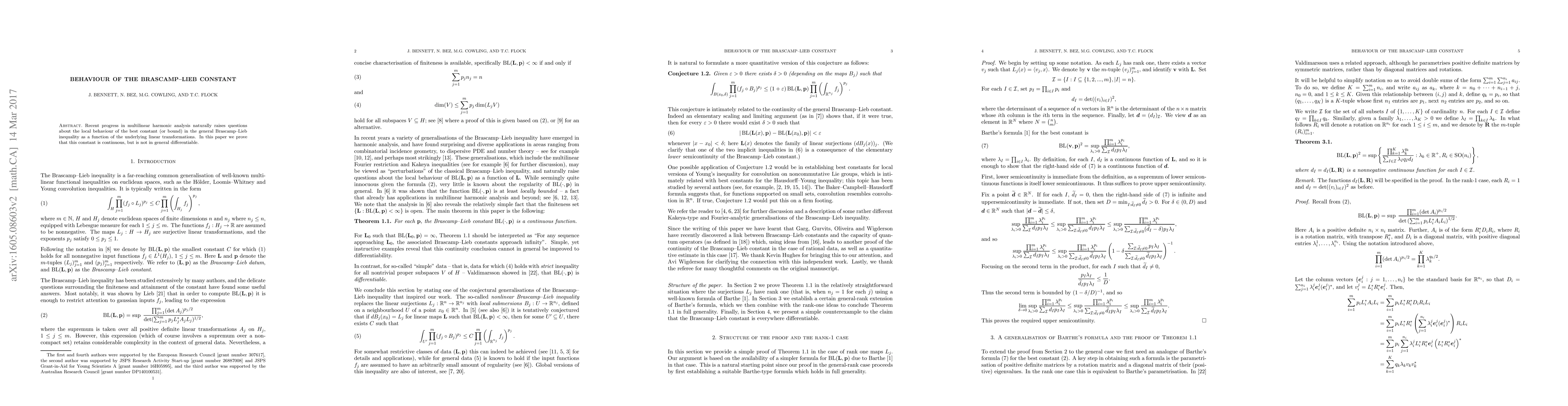 Recent progress in multilinear harmonic analysis naturally raises questions about the local behaviour of the best constant (or bound) in the general Brascamp--Lieb inequality as a function of the underlying linear transformations. In this paper we prove that this constant is continuous, but is not in general differentiable.