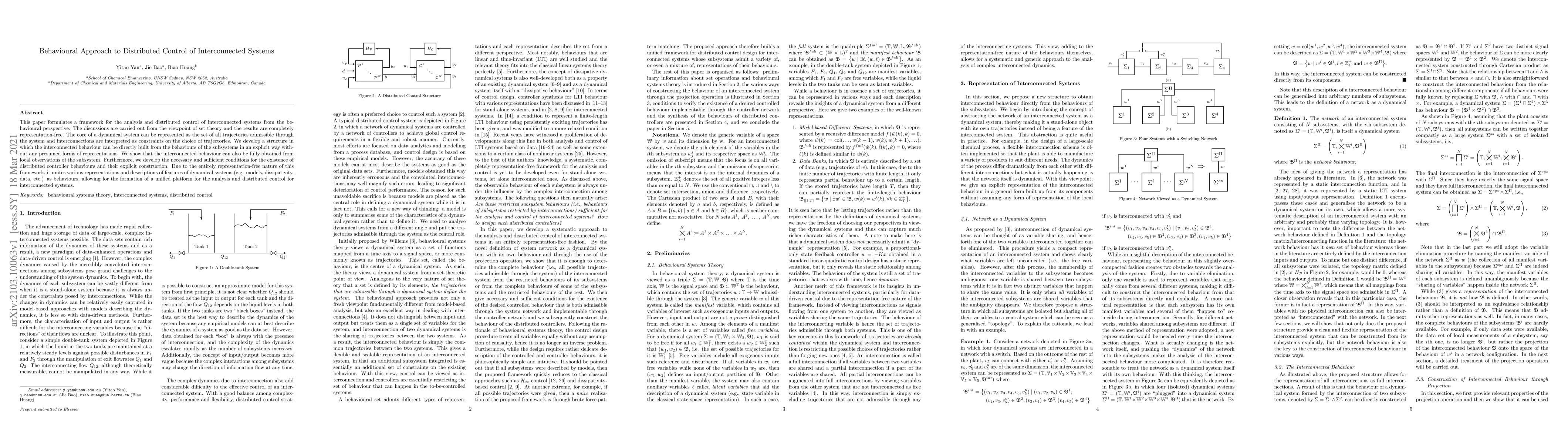 This paper formulates a framework for the analysis and distributed control of interconnected systems from the behavioural perspective. The discussions are carried out from the viewpoint of set theory and the results are completely representation-free. The core of a dynamical system can be represented as the set of all trajectories admissible through the system and interconnections are interpreted as constraints on the choice of trajectories. We develop a structure in which the interconnected behaviour can be directly built from the behaviours of the subsystems in an explicit way without any presumed forms of representations. We show that the interconnected behaviour can also be fully obtained from local observations of the subsystem. Furthermore, we develop the necessary and sufficient conditions for the existence of distributed controller behaviours and their explicit construction. Due to the entirely representation-free nature of this framework, it unites various representations and descriptions of features of dynamical systems (e.g. models, dissipativity, data, etc.) as behaviours, allowing for the formation of a unified platform for the analysis and distributed control for interconnected systems.