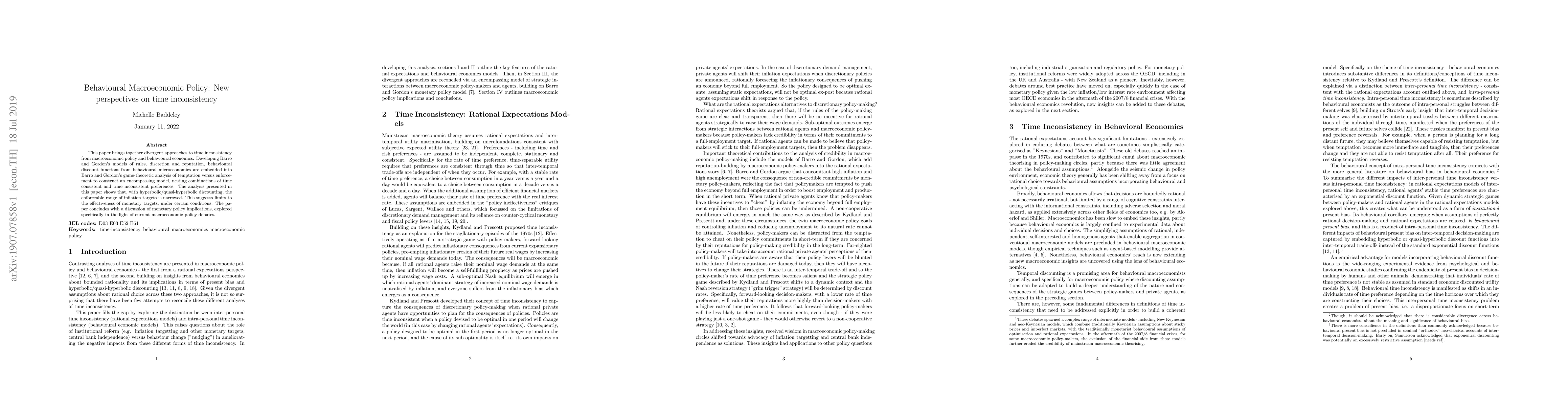This paper brings together divergent approaches to time inconsistency from macroeconomic policy and behavioural economics. Behavioural discount functions from behavioural microeconomics are embedded into a game-theoretic analysis of temptation versus enforcement to construct an encompassing model, nesting combinations of time consistent and time inconsistent preferences. The analysis presented in this paper shows that, with hyperbolic/quasihyperbolic discounting, the enforceable range of inflation targets is narrowed. This suggests limits to the effectiveness of monetary targets, under certain conditions. The paper concludes with a discussion of monetary policy implications, explored specifically in the light of current macroeconomic policy debates.