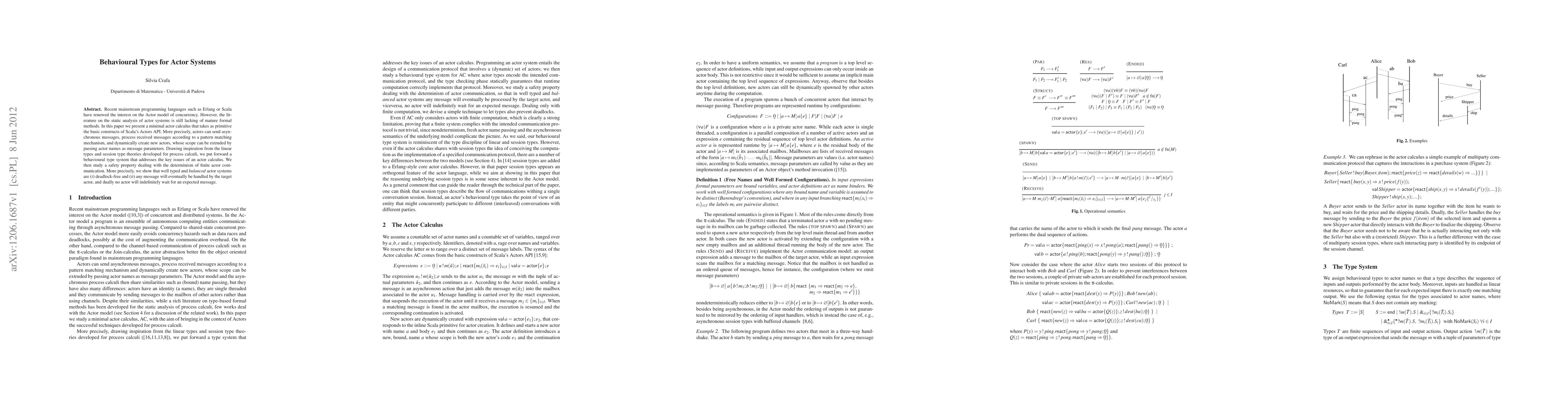 This paper introduces a minimal actor calculus based on Scala's Actors API, proposing a behavioural type system inspired by linear types and session type theories. It demonstrates that well-typed and balanced actor systems are deadlock-free and ensure message delivery without indefinite waiting.