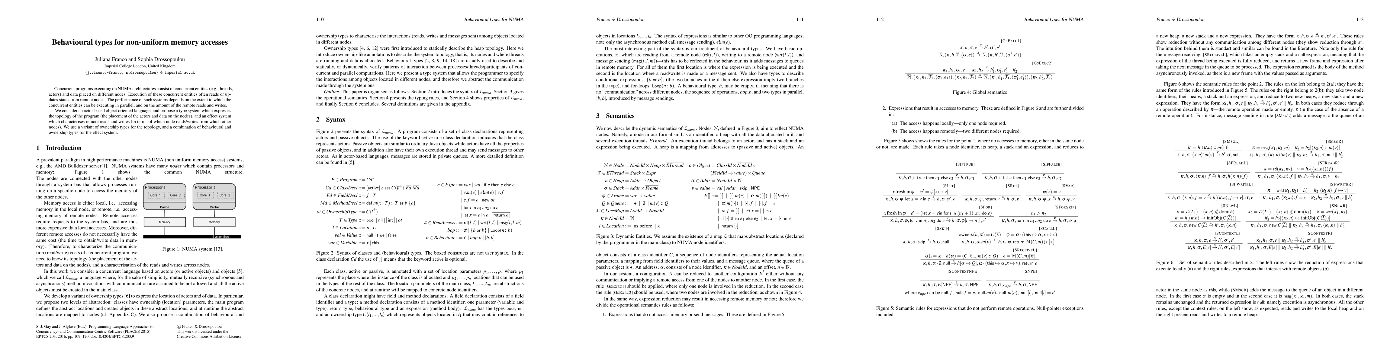 This paper proposes a type system for an actor-based language running on NUMA architectures, using ownership types to express program topology and a combination of behavioural and ownership types to characterize remote memory accesses, aiming to improve parallel execution efficiency.