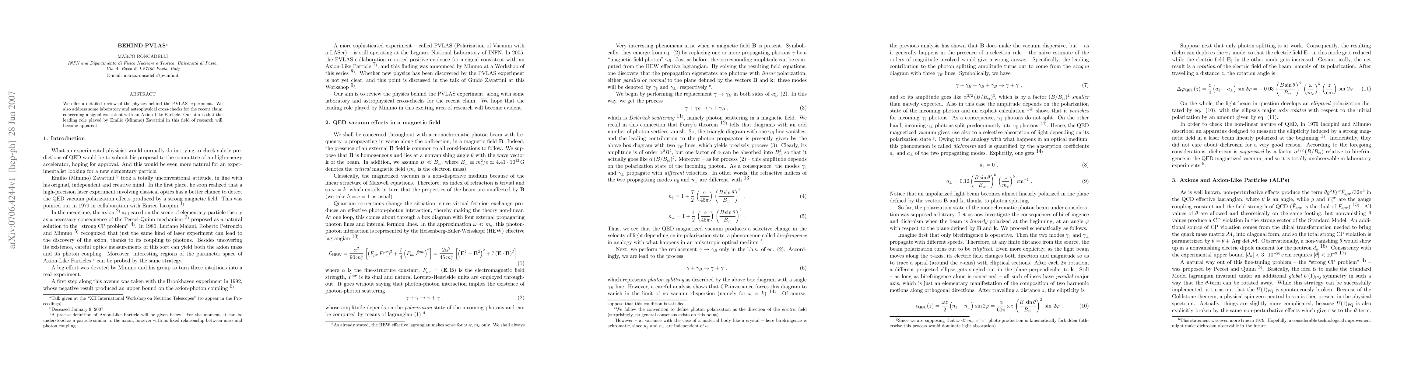 We offer a detailed review of the physics behind the PVLAS experiment. We also address some laboratory and astrophysical cross-checks for the recent claim concerning a signal consistent with an Axion-Like Particle. Our aim is that the leading role played by Emilio (Mimmo) Zavattini in this field of research will become apparent.