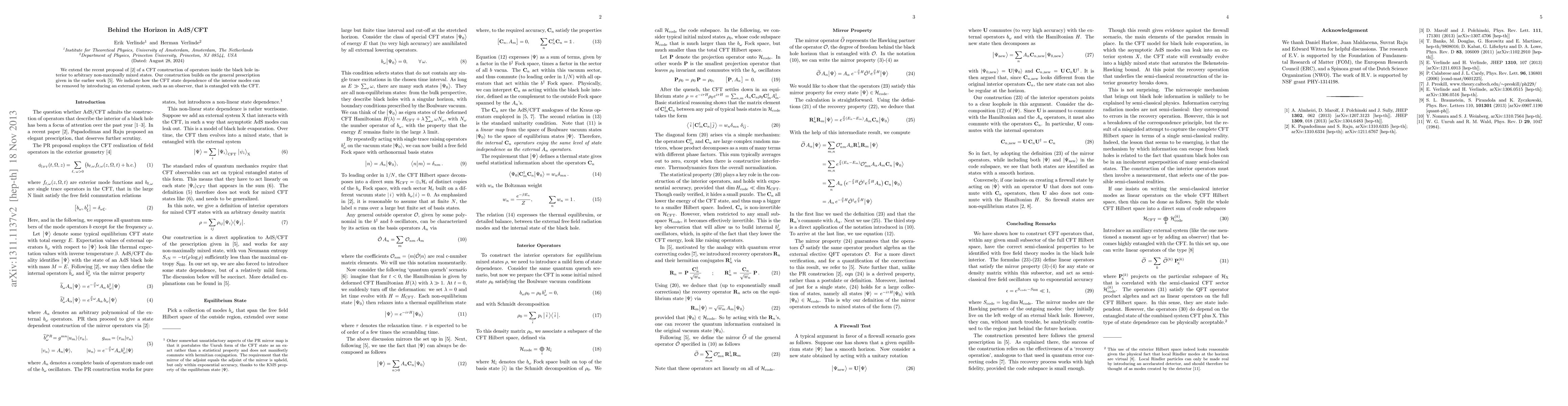 We extend the recent proposal of Papadodimas and Raju of a CFT construction of operators inside the black hole interior to arbitrary non-maximally mixed states. Our construction builds on the general prescription given in earlier work, based on ideas from quantum error correction. We indicate how the CFT state dependence of the interior modes can be removed by introducing an external system, such as an observer, that is entangled with the CFT.