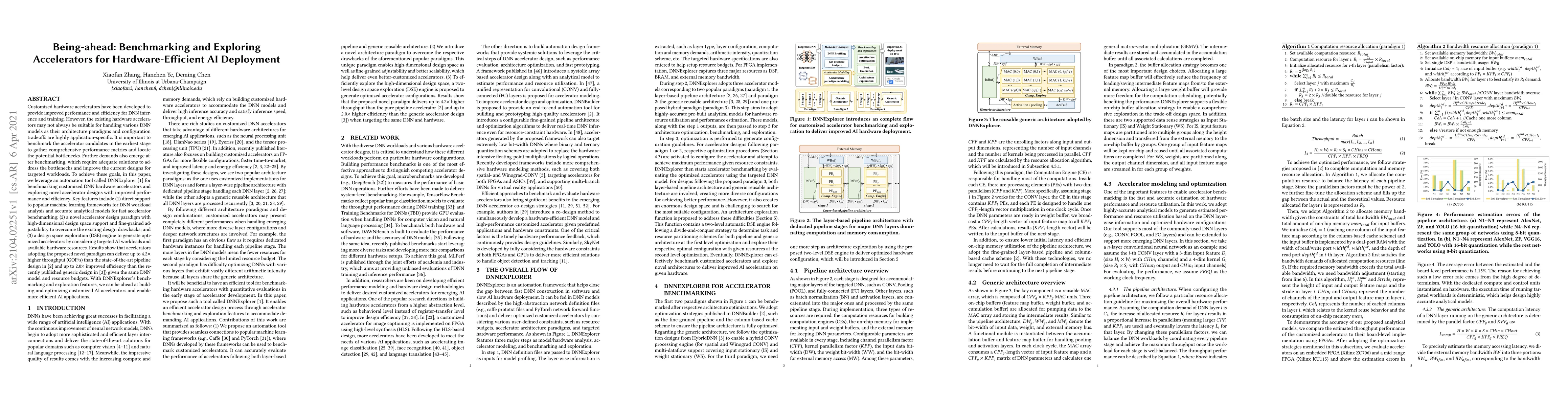 This paper introduces DNNExplorer, an automation tool for benchmarking and exploring customized hardware accelerators for AI deployment. It demonstrates significant performance improvements over existing designs, achieving up to 4.2X higher throughput and 2.0X better efficiency.