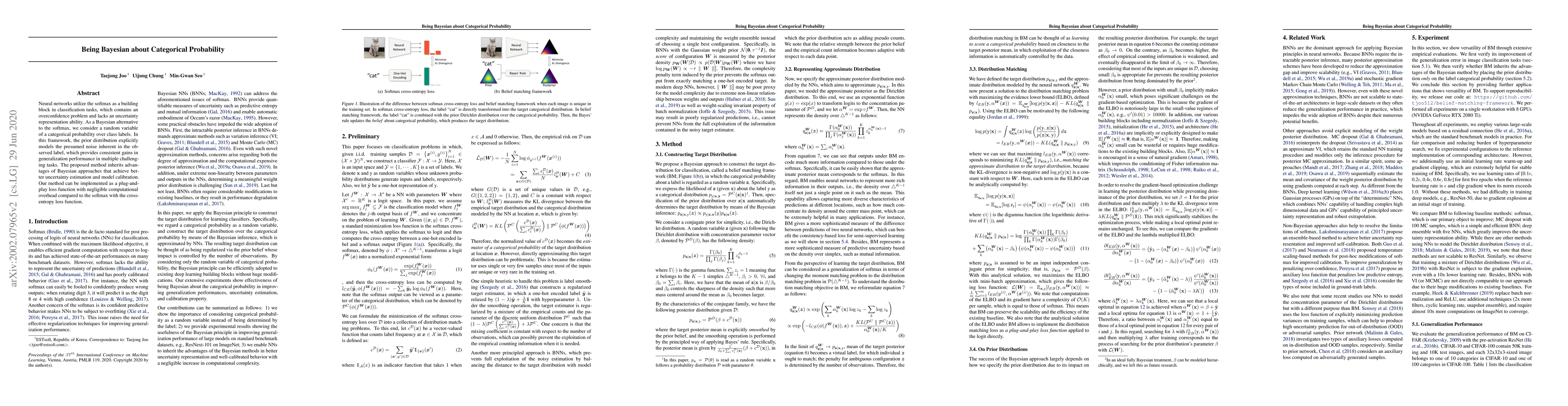 Neural networks utilize the softmax as a building block in classification tasks, which contains an overconfidence problem and lacks an uncertainty representation ability. As a Bayesian alternative to the softmax, we consider a random variable of a categorical probability over class labels. In this framework, the prior distribution explicitly models the presumed noise inherent in the observed label, which provides consistent gains in generalization performance in multiple challenging tasks. The proposed method inherits advantages of Bayesian approaches that achieve better uncertainty estimation and model calibration. Our method can be implemented as a plug-and-play loss function with negligible computational overhead compared to the softmax with the cross-entropy loss function.