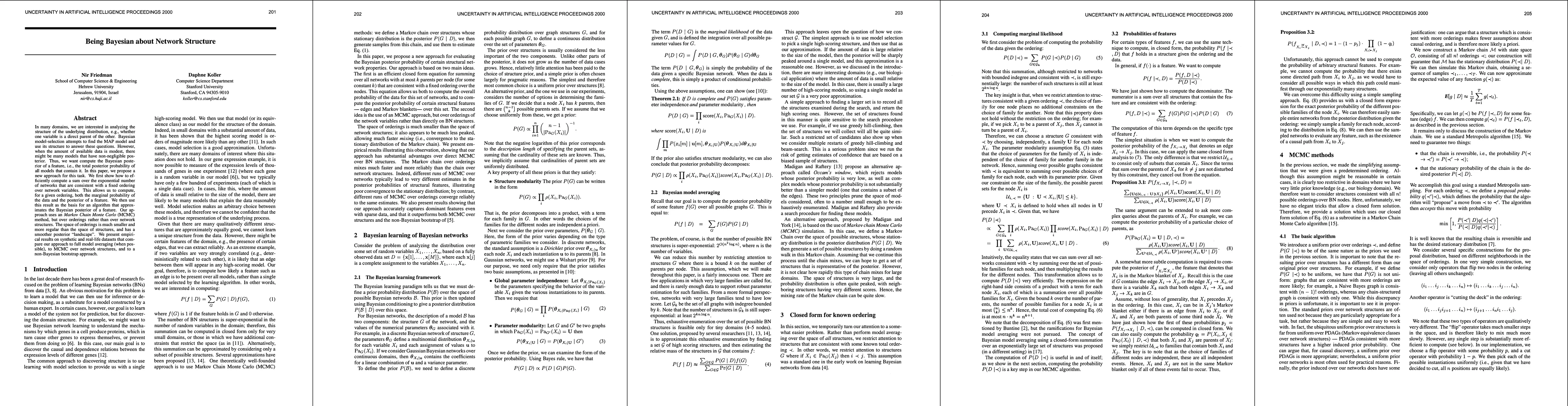 This paper proposes a new method for computing the Bayesian posterior of features in network structures, especially when data is limited. It introduces an efficient algorithm using Markov Chain Monte Carlo (MCMC) over variable orderings instead of network structures, which provides a smoother posterior landscape and better scalability.