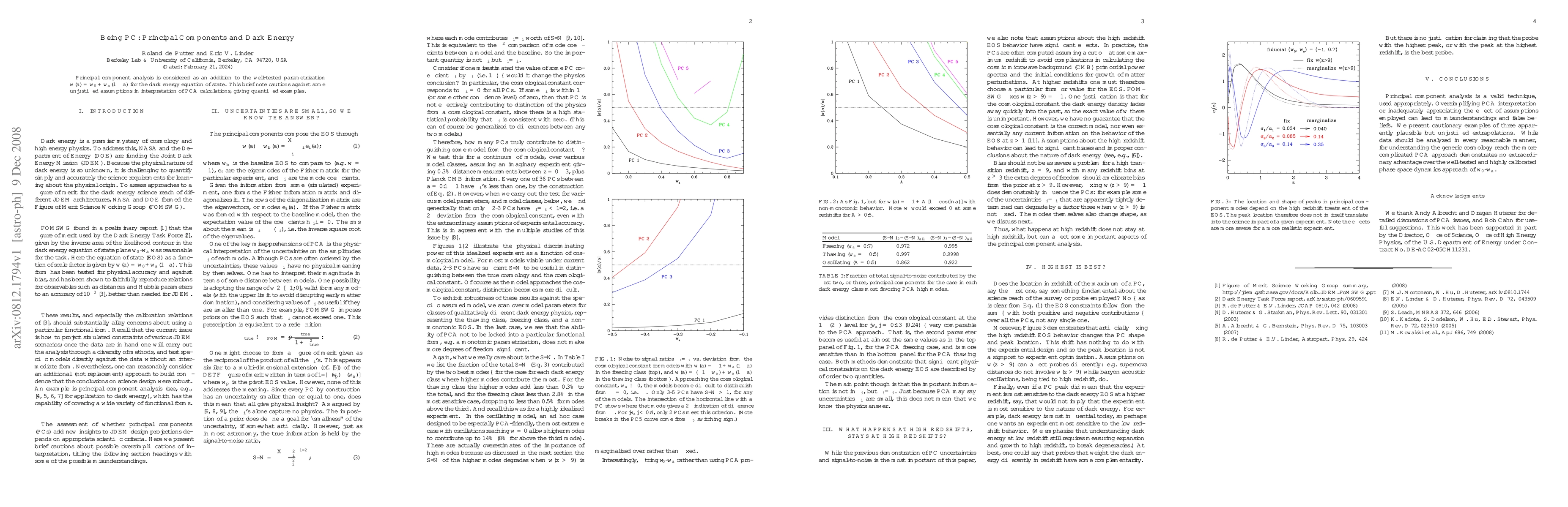 Principal component analysis is considered as an addition to the well-tested parametrization w(a)=w_0+w_a(1-a) for the dark energy equation of state. This brief note cautions against some unjustified assumptions in interpretation of PCA calculations, giving quantified examples.