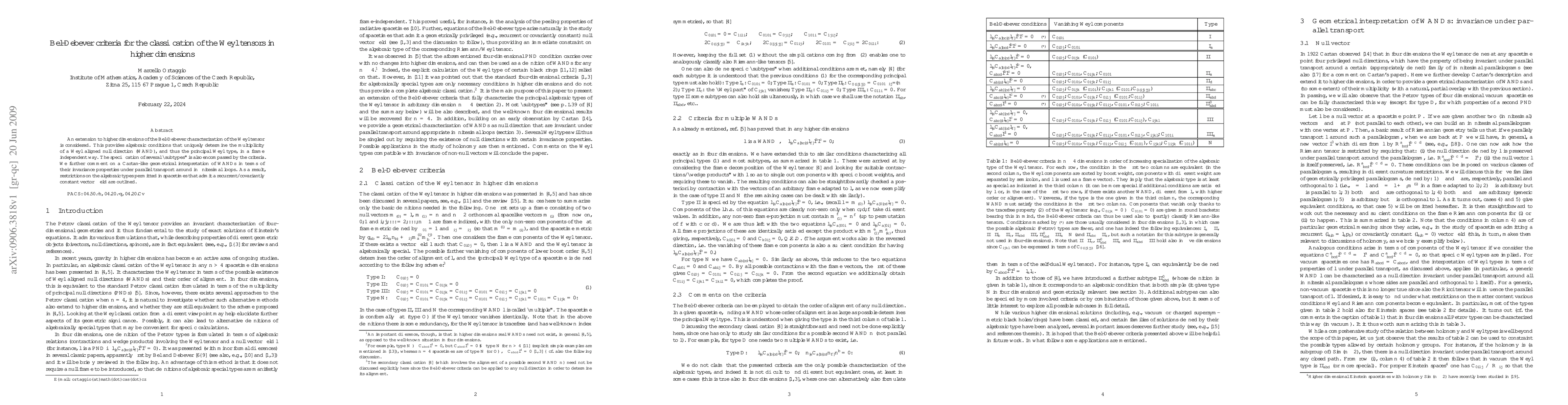 The paper extends Bel-Debever criteria to higher dimensions for classifying Weyl tensors, enabling frame-independent determination of principal Weyl types and restrictions on spacetimes with recurrent/covariantly constant vector fields.