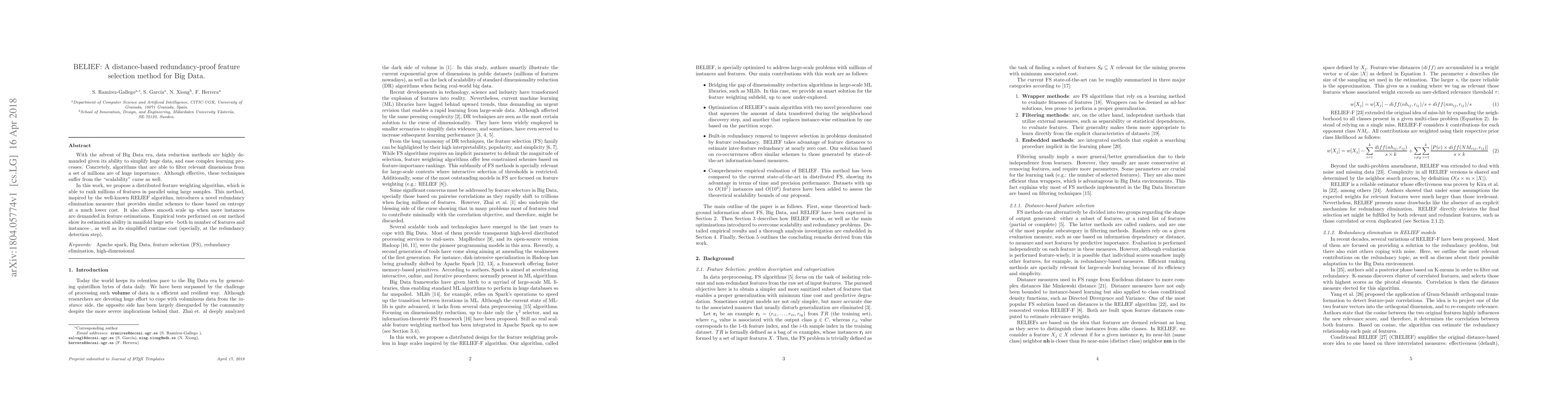 With the advent of Big Data era, data reduction methods are highly demanded given its ability to simplify huge data, and ease complex learning processes. Concretely, algorithms that are able to filter relevant dimensions from a set of millions are of huge importance. Although effective, these techniques suffer from the "scalability" curse as well. In this work, we propose a distributed feature weighting algorithm, which is able to rank millions of features in parallel using large samples. This method, inspired by the well-known RELIEF algorithm, introduces a novel redundancy elimination measure that provides similar schemes to those based on entropy at a much lower cost. It also allows smooth scale up when more instances are demanded in feature estimations. Empirical tests performed on our method show its estimation ability in manifold huge sets --both in number of features and instances--, as well as its simplified runtime cost (specially, at the redundancy detection step).