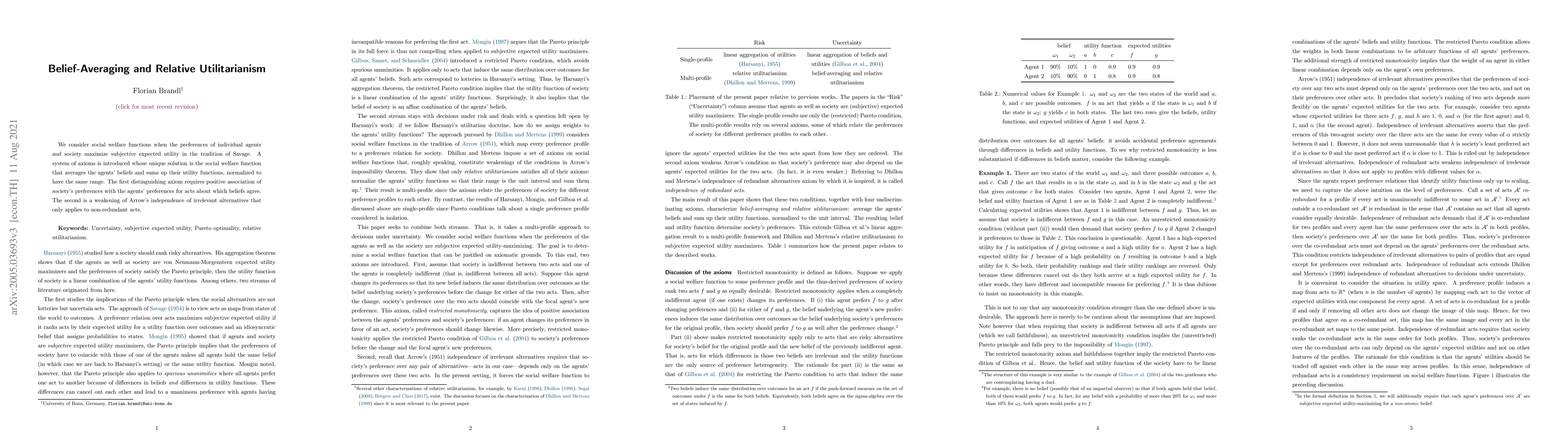 We consider social welfare functions when the preferences of individual agents and society maximize subjective expected utility in the tradition of Savage. A system of axioms is introduced whose unique solution is the social welfare function that averages the agents' beliefs and sums up their utility functions, normalized to have the same range. The first distinguishing axiom requires positive association of society's preferences with the agents' preferences for acts about which beliefs agree. The second is a weakening of Arrow's independence of irrelevant alternatives that only applies to non-redundant acts.