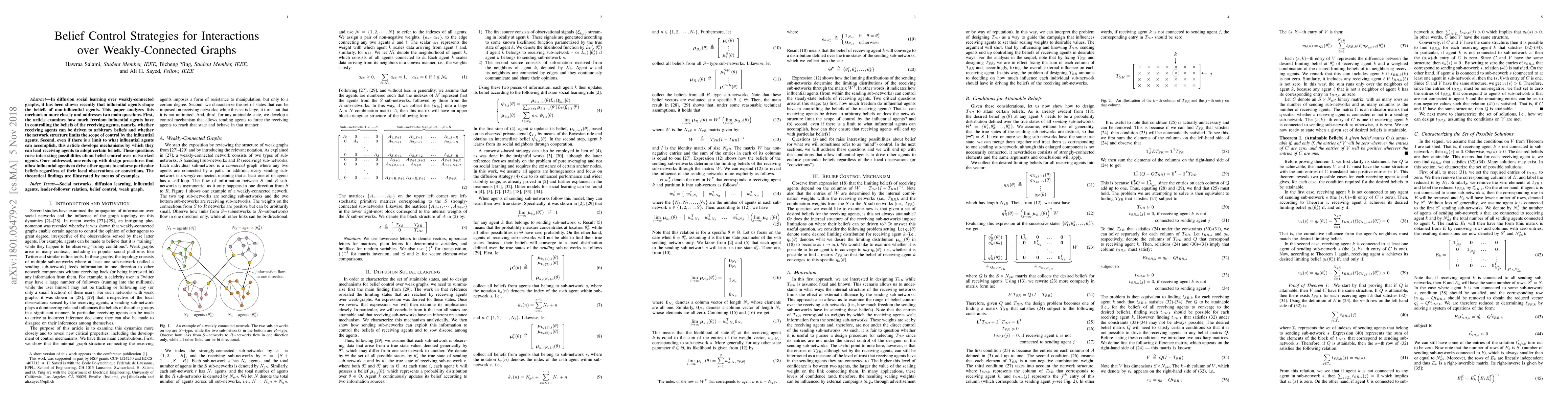 In diffusion social learning over weakly-connected graphs, it has been shown recently that influential agents shape the beliefs of non-influential agents. This paper analyzes this mechanism more closely and addresses two main questions. First, the article examines how much freedom influential agents have in controlling the beliefs of the receiving agents, namely, whether receiving agents can be driven to arbitrary beliefs and whether the network structure limits the scope of control by the influential agents. Second, even if there is a limit to what influential agents can accomplish, this article develops mechanisms by which they can lead receiving agents to adopt certain beliefs. These questions raise interesting possibilities about belief control over networked agents. Once addressed, one ends up with design procedures that allow influential agents to drive other agents to endorse particular beliefs regardless of their local observations or convictions. The theoretical findings are illustrated by means of examples.