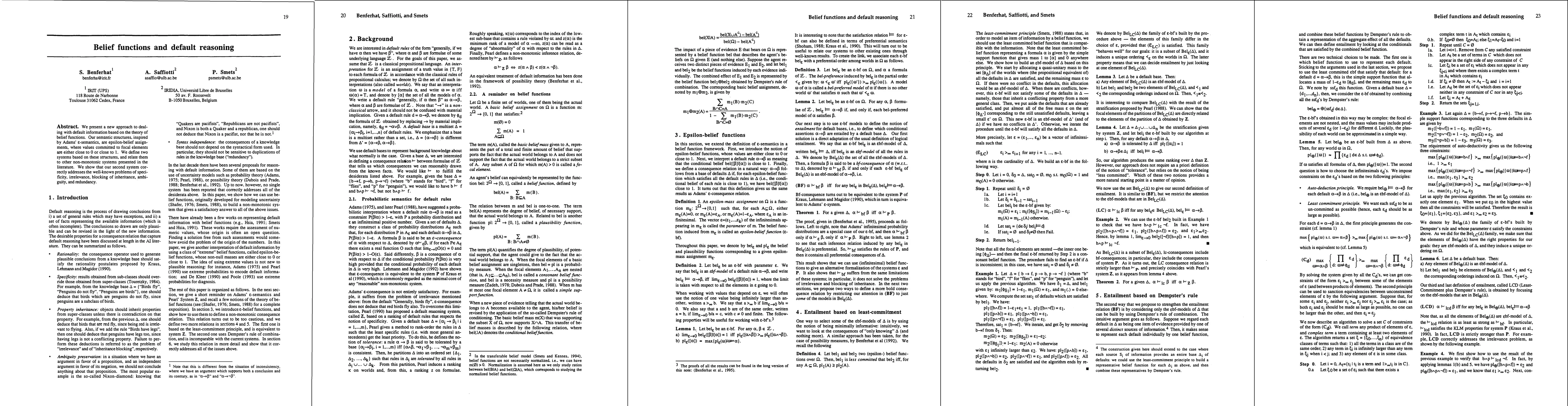 This paper introduces a novel method for handling default reasoning using belief functions, proposing epsilon-belief assignments that focus on extreme values. The authors define two systems based on these assignments and demonstrate that the second system effectively resolves issues like specificity, irrelevance, blocking, ambiguity, and redundancy.