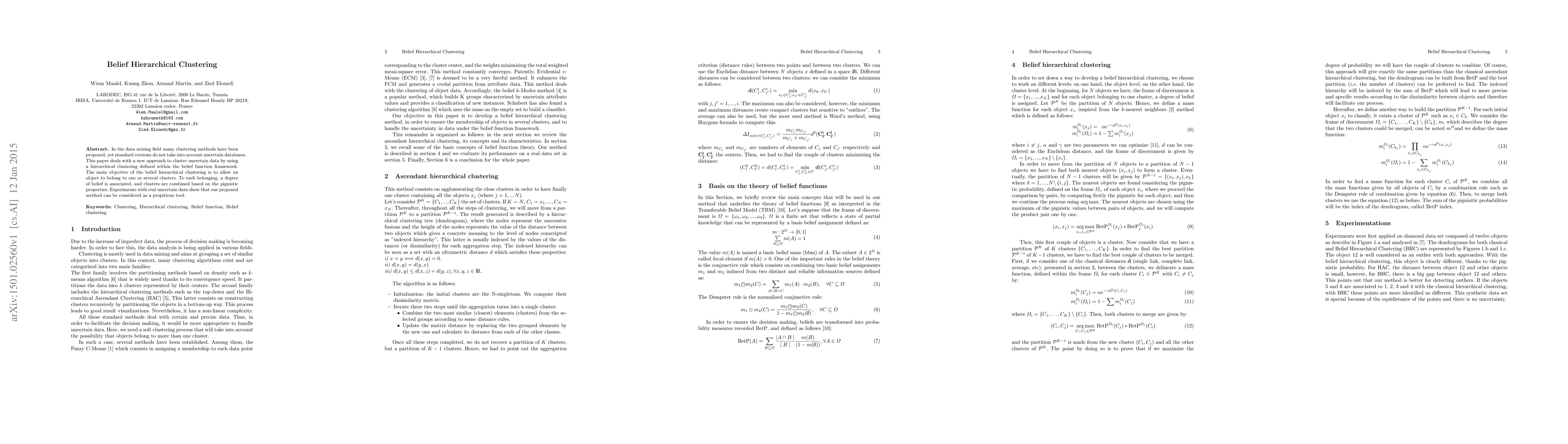 This paper introduces a novel hierarchical clustering method for uncertain databases using belief function theory, allowing objects to belong to multiple clusters with associated belief degrees. Experiments demonstrate the method's effectiveness as a useful tool for handling uncertain data.