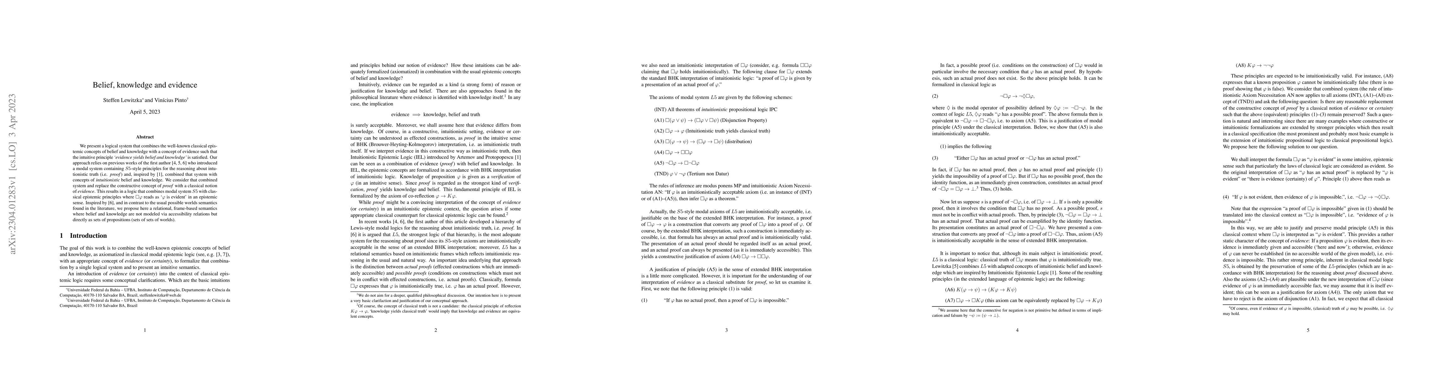 This paper develops a logical system that integrates classical epistemic concepts of belief and knowledge with a classical notion of evidence, satisfying the principle that evidence yields belief and knowledge. It builds on previous work by the first author, replacing constructive proof with classical evidence, and uses a relational, frame-based semantics to model belief and knowledge directly as sets of propositions.