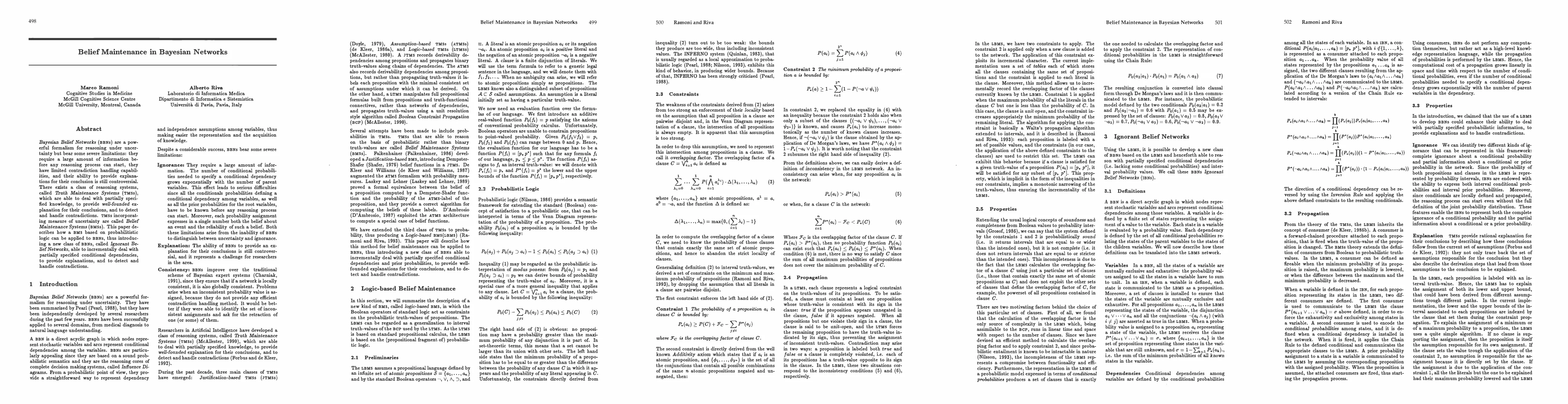 Bayesian Belief Networks (BBNs) are a powerful formalism for reasoning under uncertainty but bear some severe limitations: they require a large amount of information before any reasoning process can start, they have limited contradiction handling capabilities, and their ability to provide explanations for their conclusion is still controversial. There exists a class of reasoning systems, called Truth Maintenance Systems (TMSs), which are able to deal with partially specified knowledge, to provide well-founded explanation for their conclusions, and to detect and handle contradictions. TMSs incorporating measure of uncertainty are called Belief Maintenance Systems (BMSs). This paper describes how a BMS based on probabilistic logic can be applied to BBNs, thus introducing a new class of BBNs, called Ignorant Belief Networks, able to incrementally deal with partially specified conditional dependencies, to provide explanations, and to detect and handle contradictions.