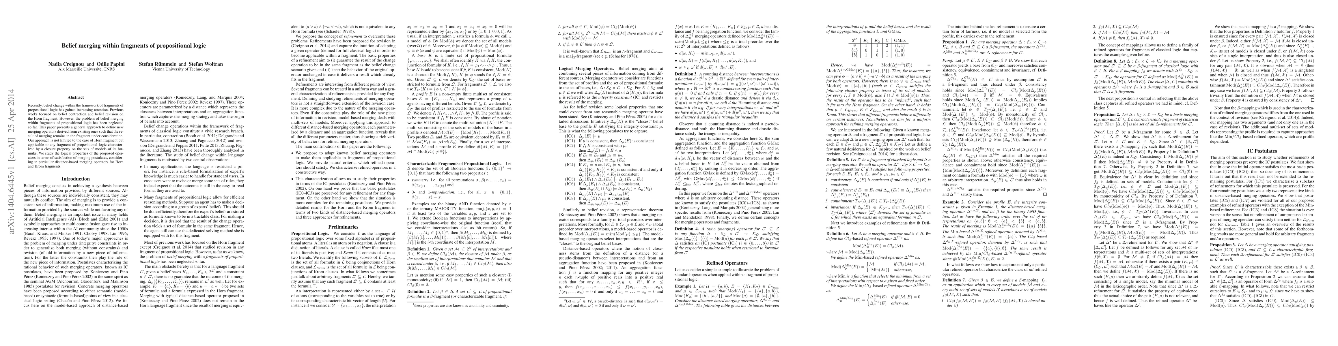 This paper introduces a general method for defining belief merging operators within fragments of propositional logic that ensure the result remains within the same fragment. The approach extends beyond the Horn fragment to any fragment characterized by a closure property, and it examines the logical properties of these operators in relation to merging postulates.